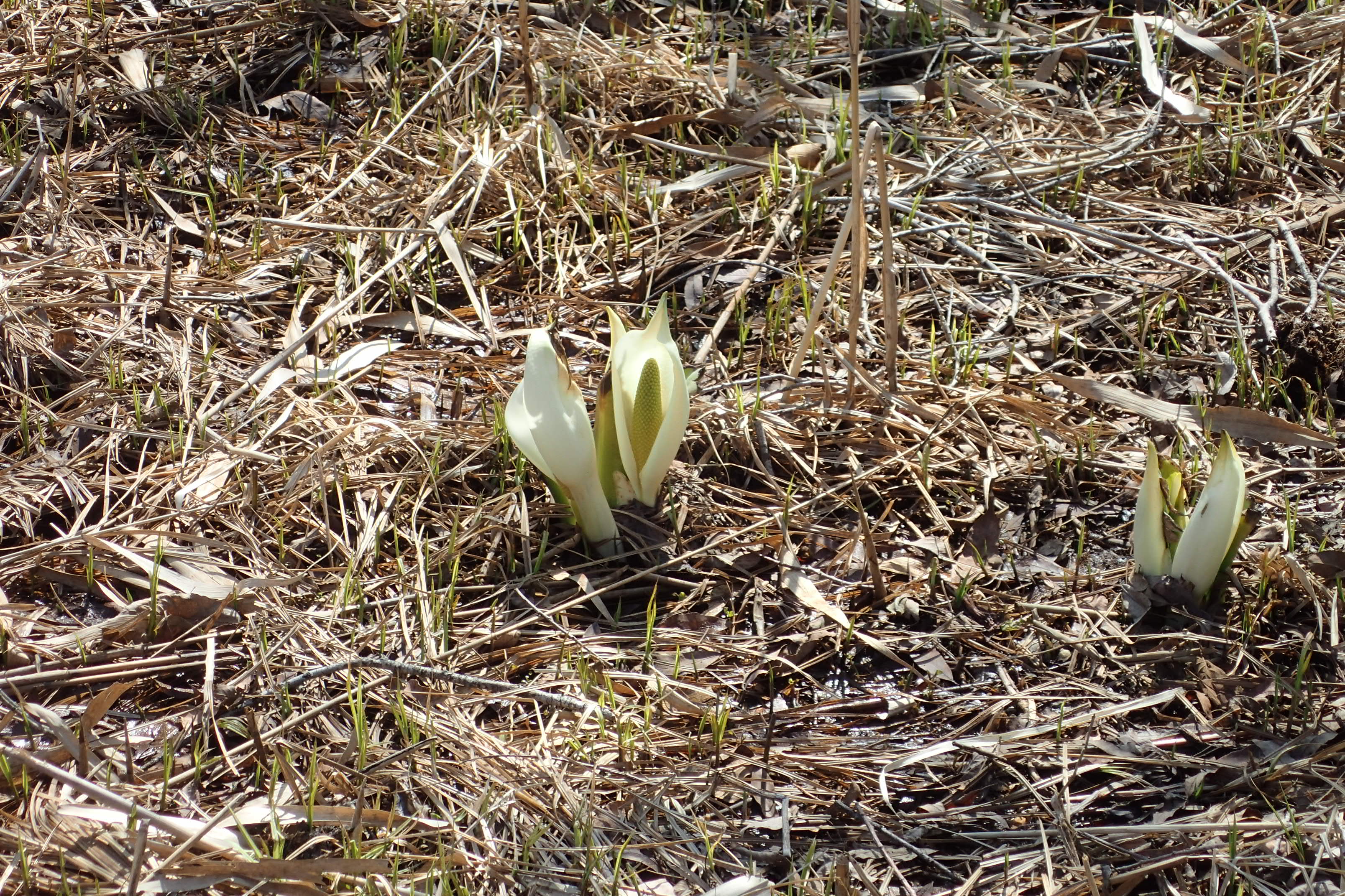 湿地ではミズバショウの白い仏炎苞がちらほら見られましたよ。