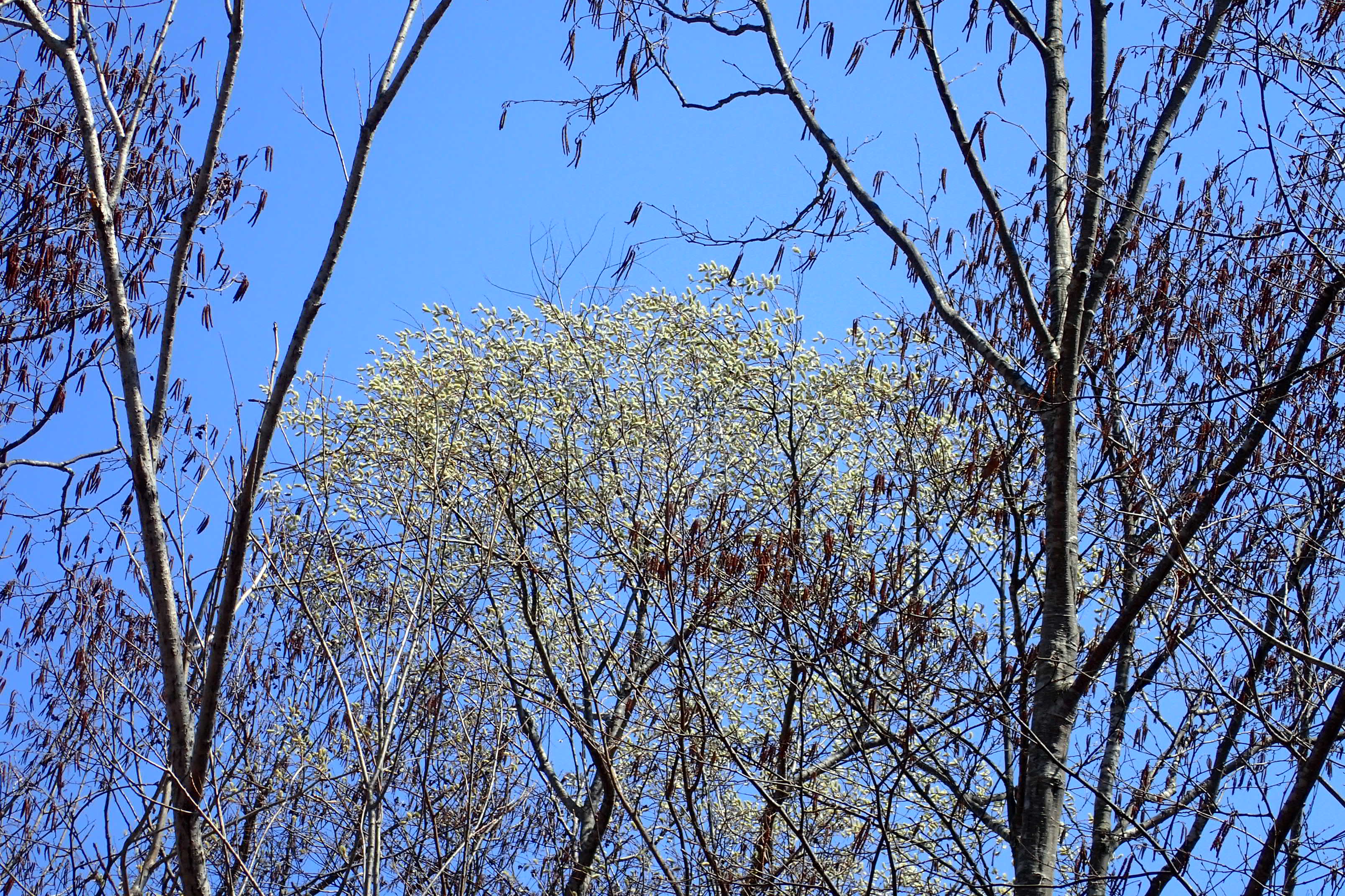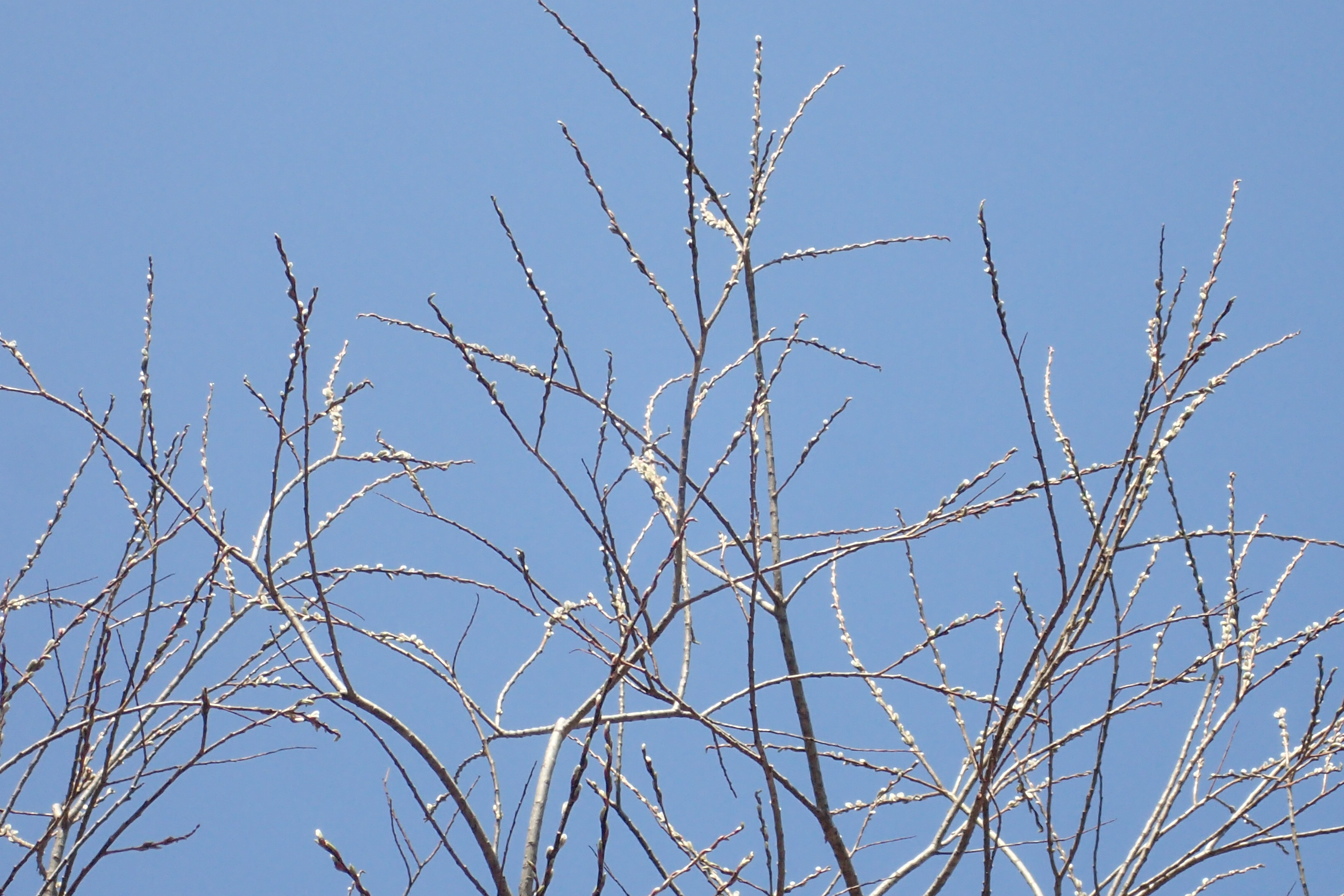 オノエヤナギの花はまだのようです。銀色の毛に包まれていました。