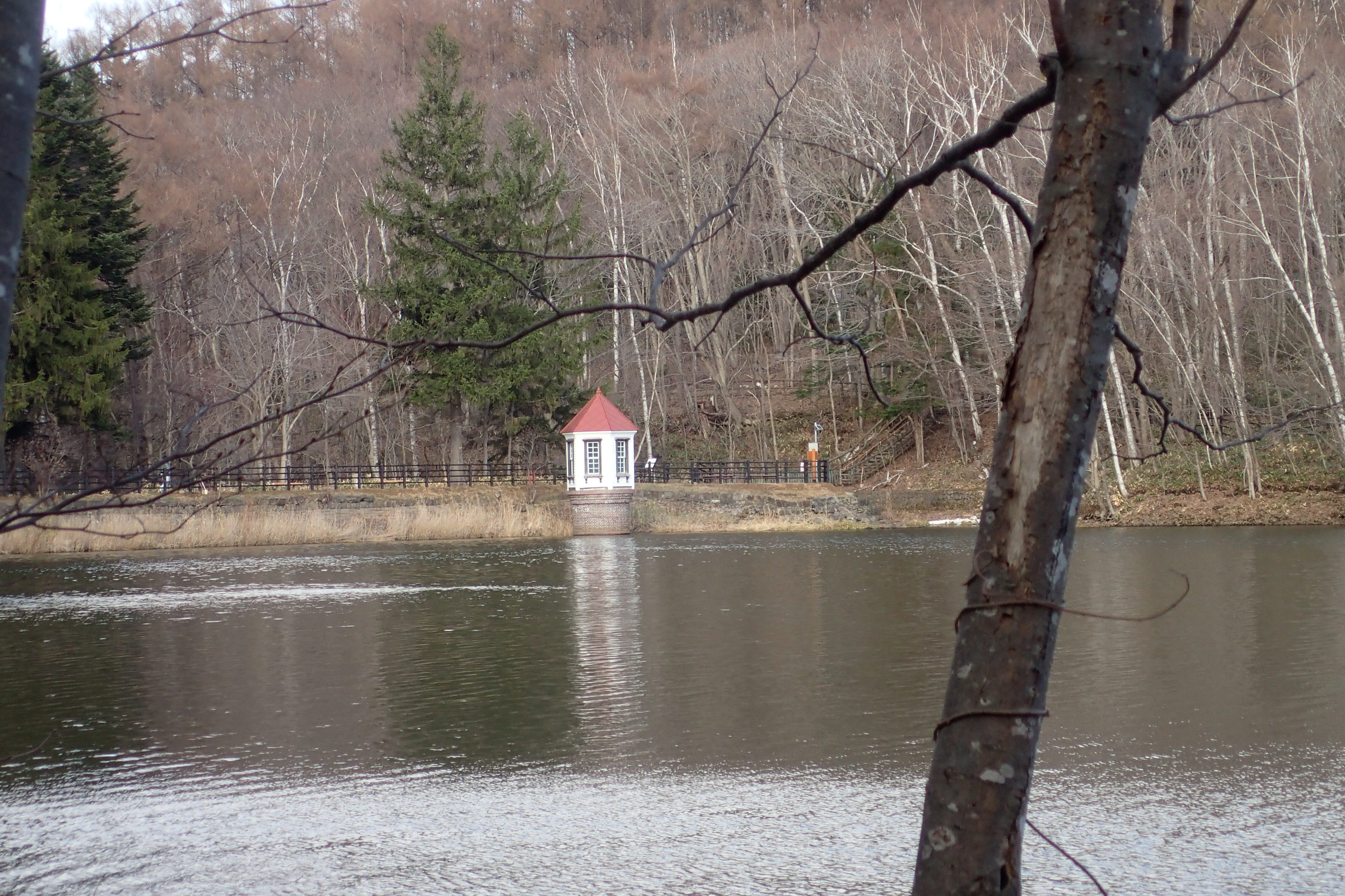 池の様子。キンクロハジロやカイツブリなどの姿がありました。