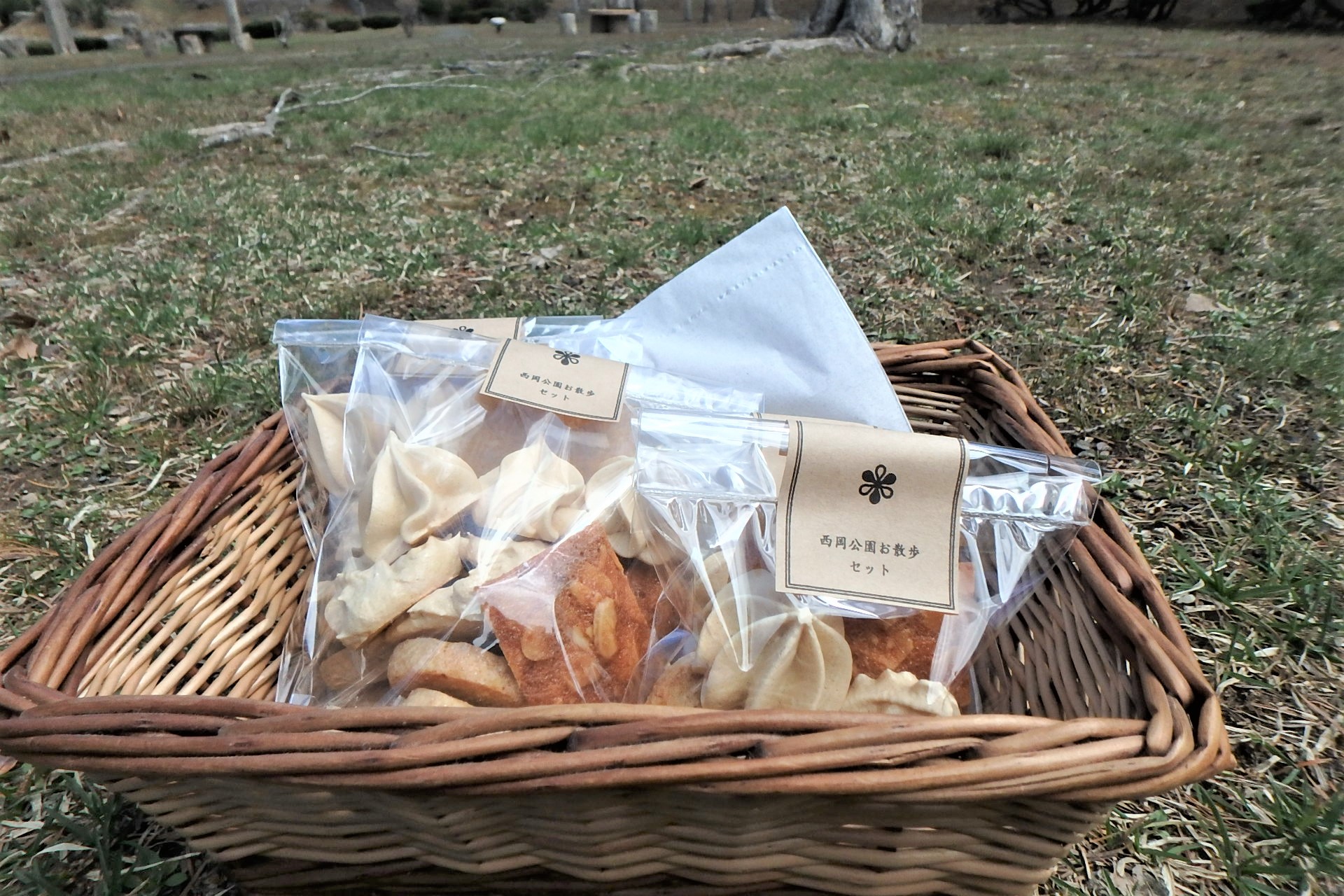 焼メレンゲやクッキーなどが4種類入った詰め合わせセット。小120円と大360円。管理事務所の受付にて販売中です。数量限定なのでお早めにどうぞ。