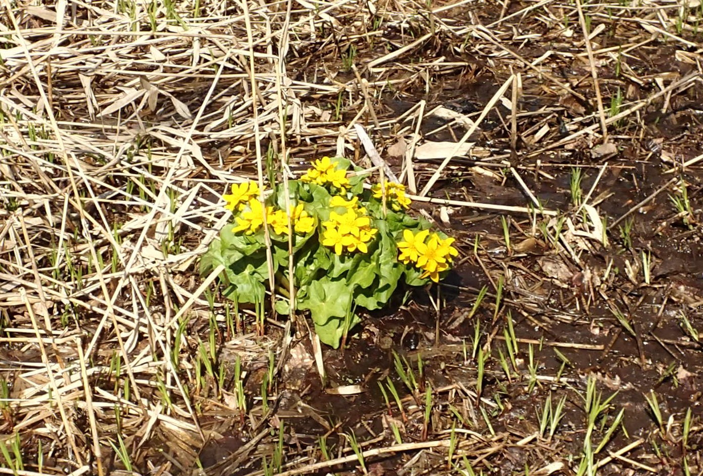 湿地の中にパッと咲いているのは、エゾノリュウキンカです。
