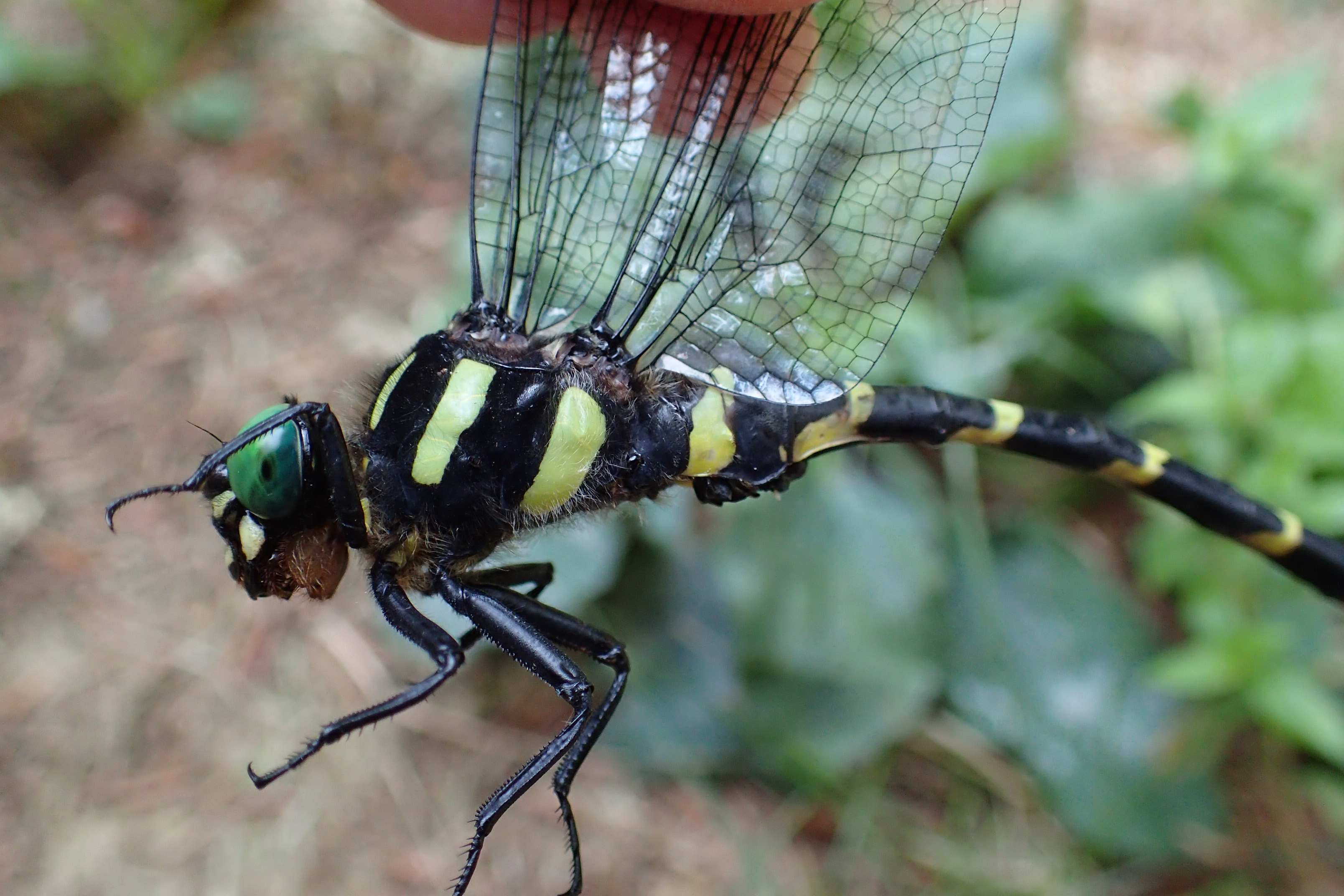 池の周りにオニヤンマがいました。力強くてかっこよいです。