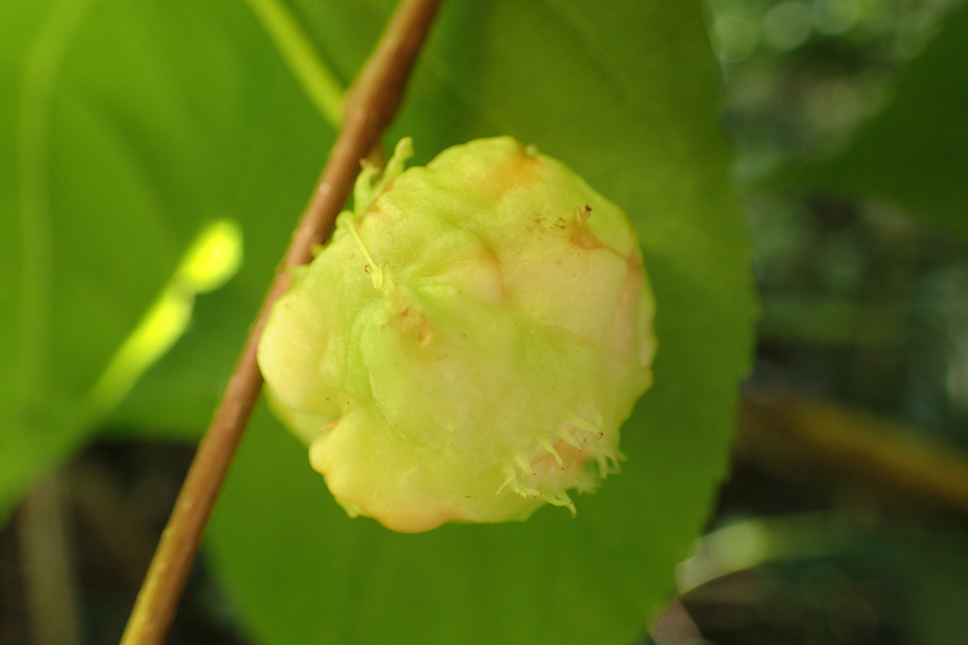 果実の部分に「マタタビタマバエ」が寄生して虫こぶを作っています。