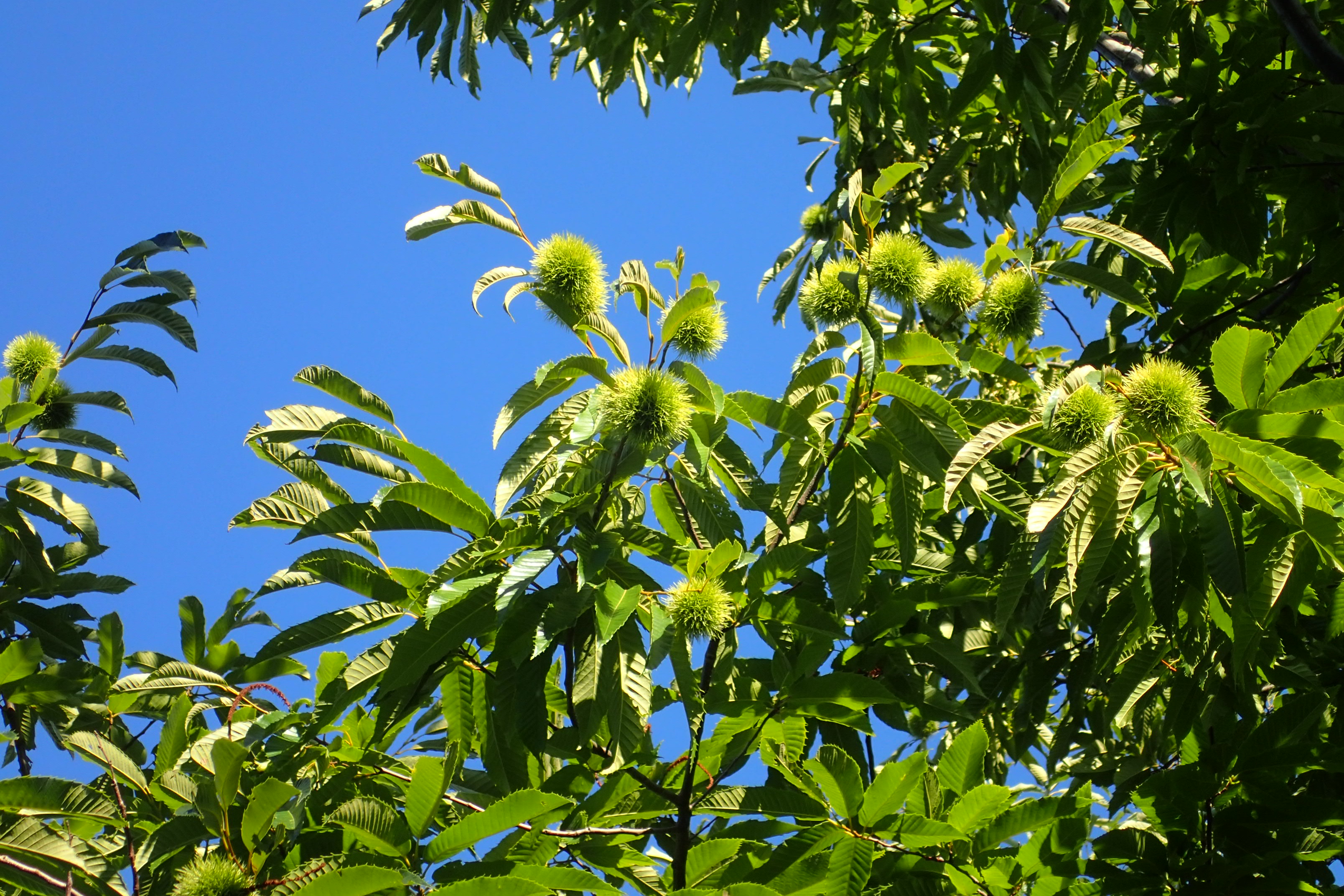 クリの木を見上げるとイガイガ(殻斗)がたくさんついています。