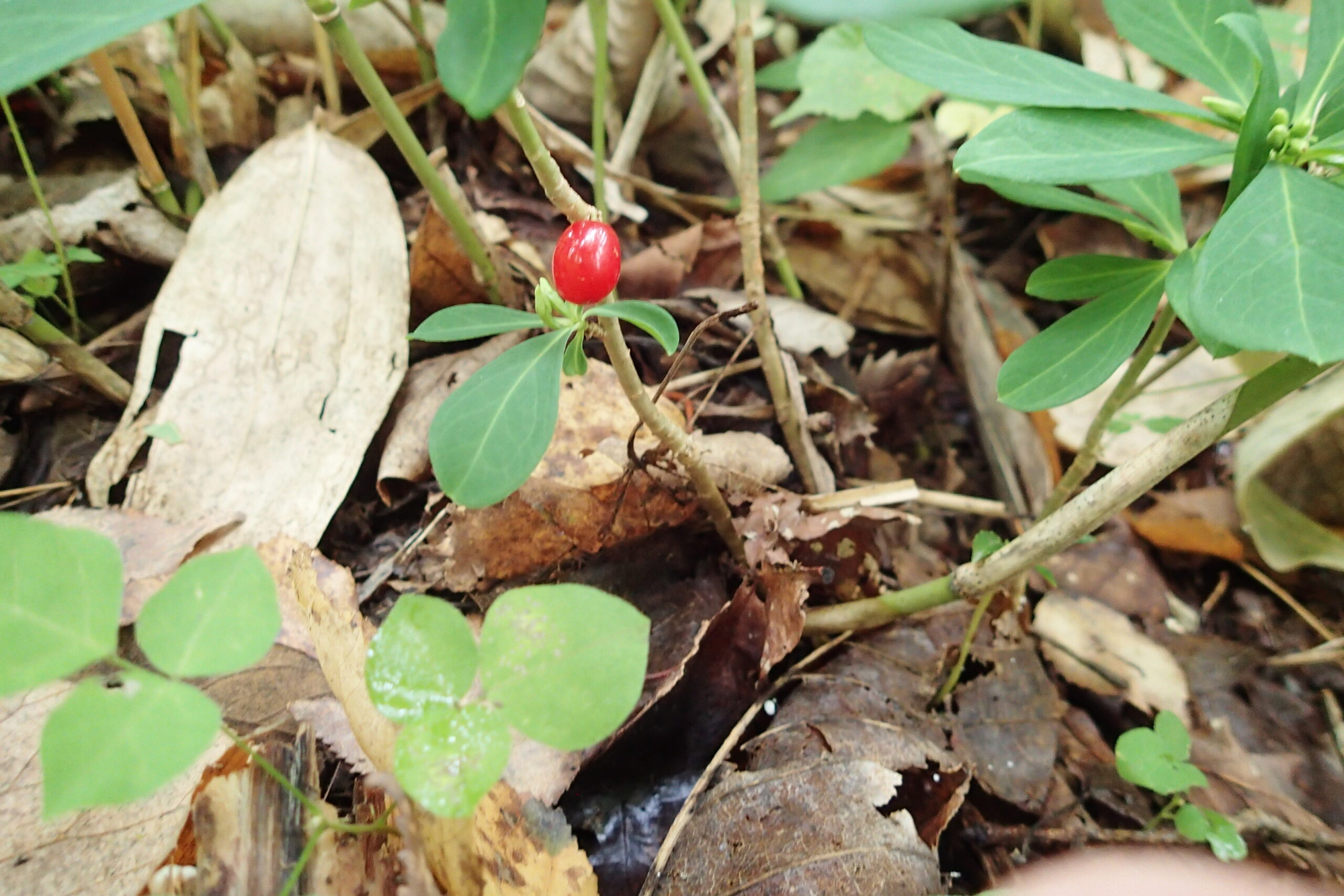 春一番に黄色い花を咲かせていたナニワズは赤い果実を付けていました。
