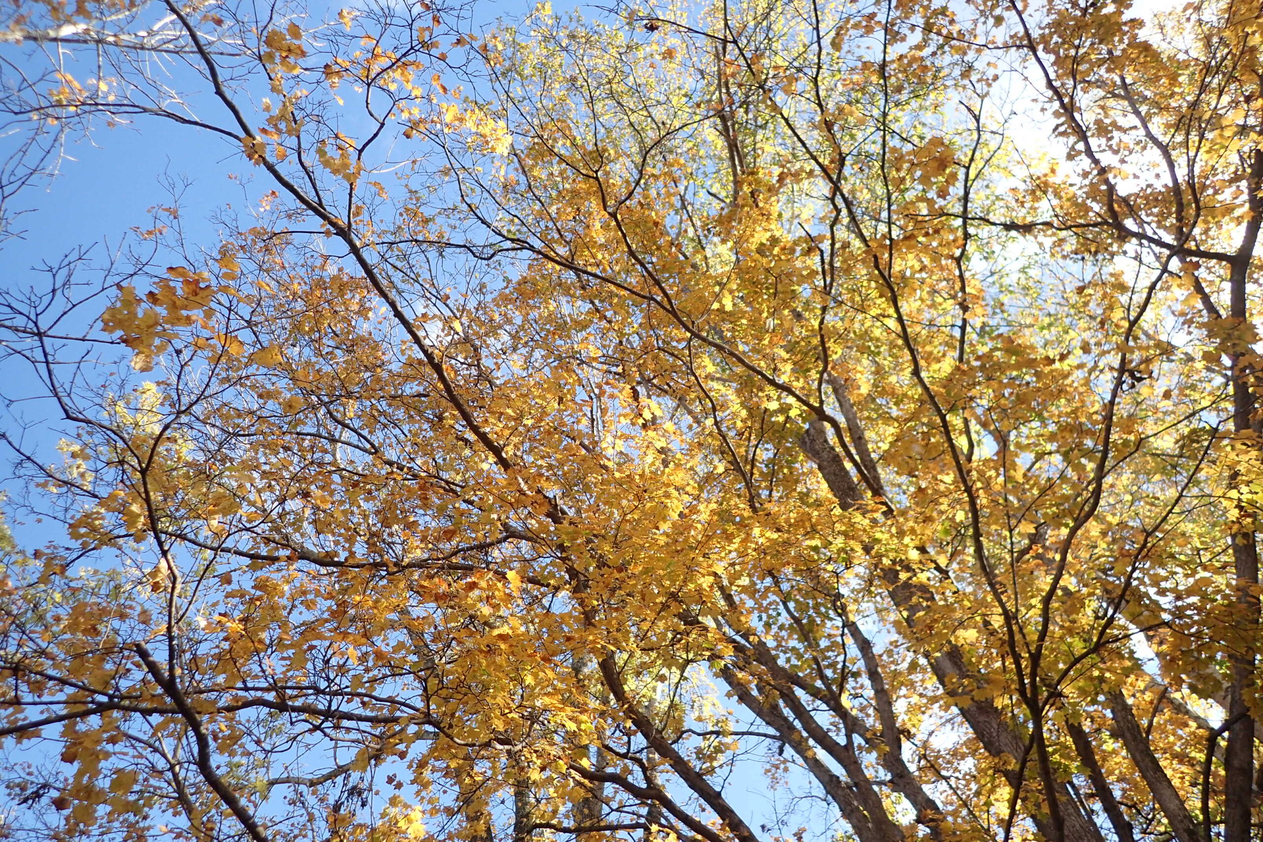 イタヤカエデの黄色い紅葉もきれいに色付いています。少し落葉を始めています。