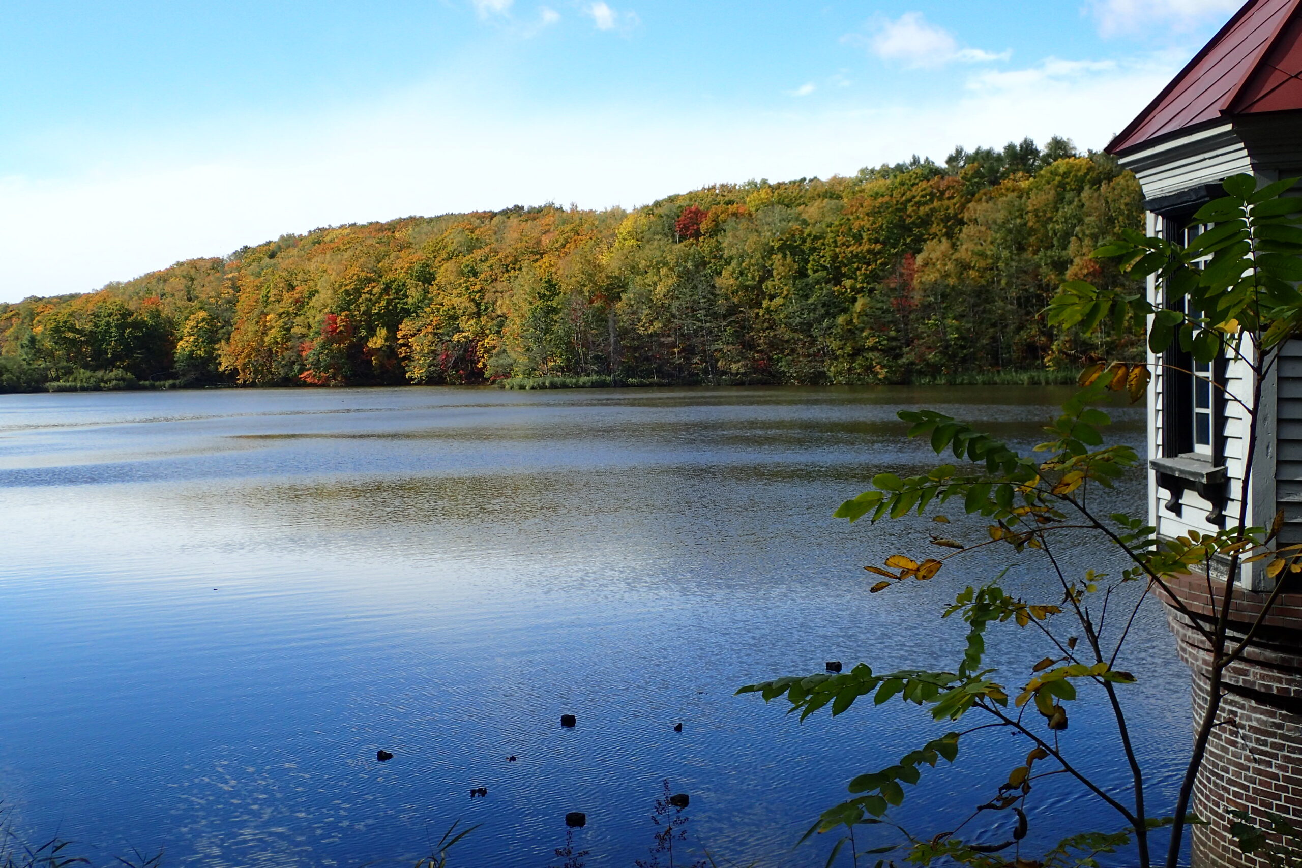 池の様子です。池の周りの森の樹木たちは黄色に紅葉するものが多いようです。