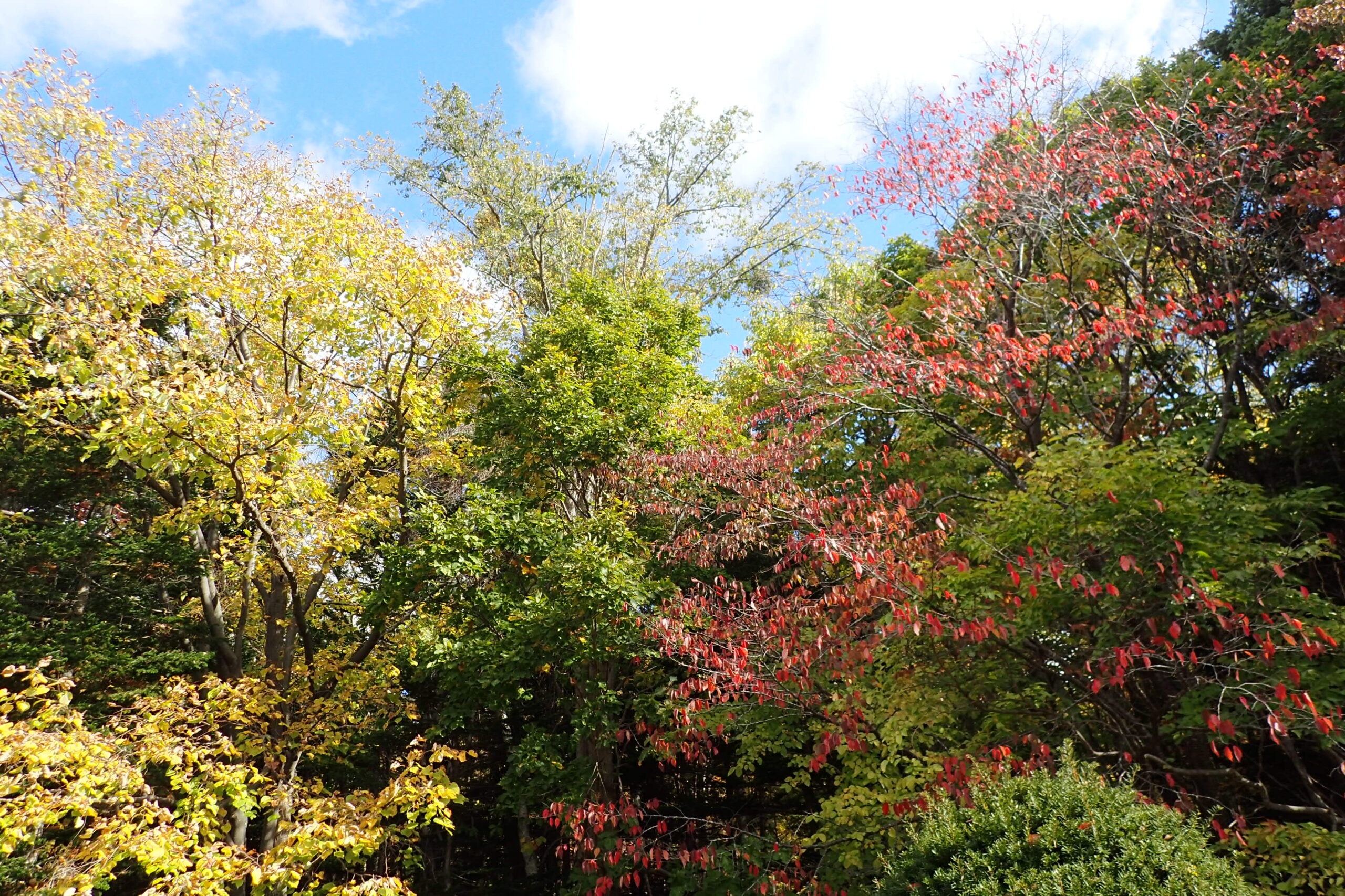赤い紅葉はエゾヤマザクラですね。もうだいぶん落葉してしまいました。