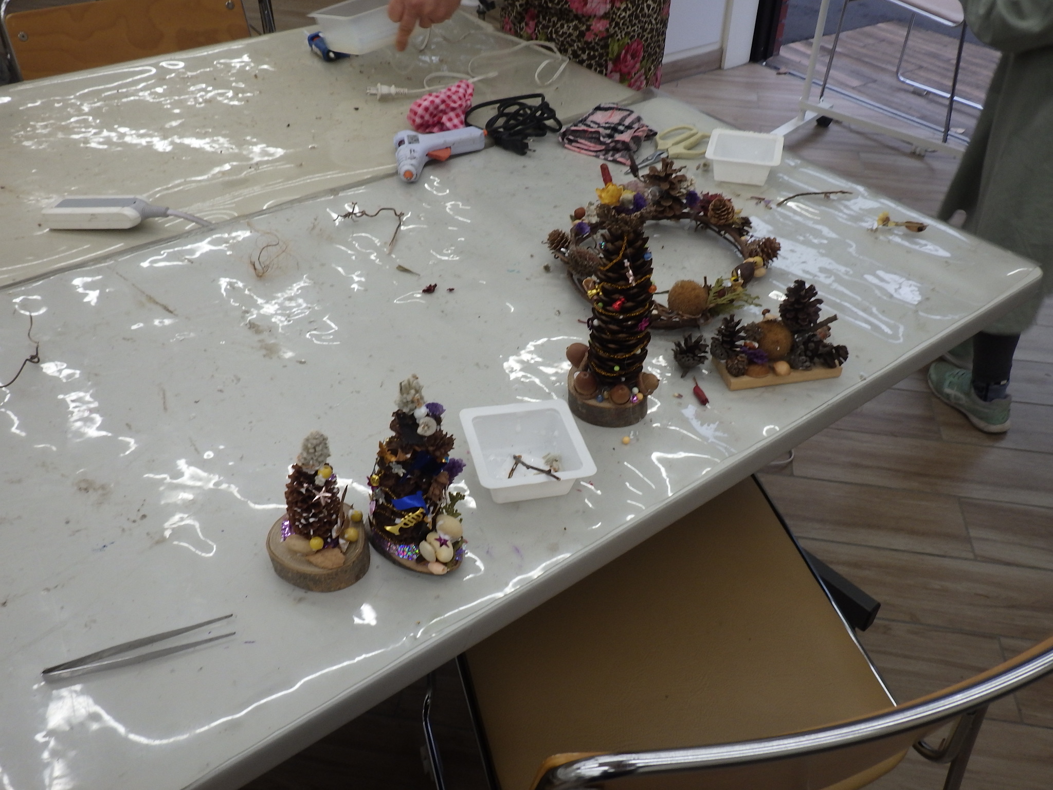 マツボックリにスパンコールなどを散りばめたオブジェも作ってくれましたね。
