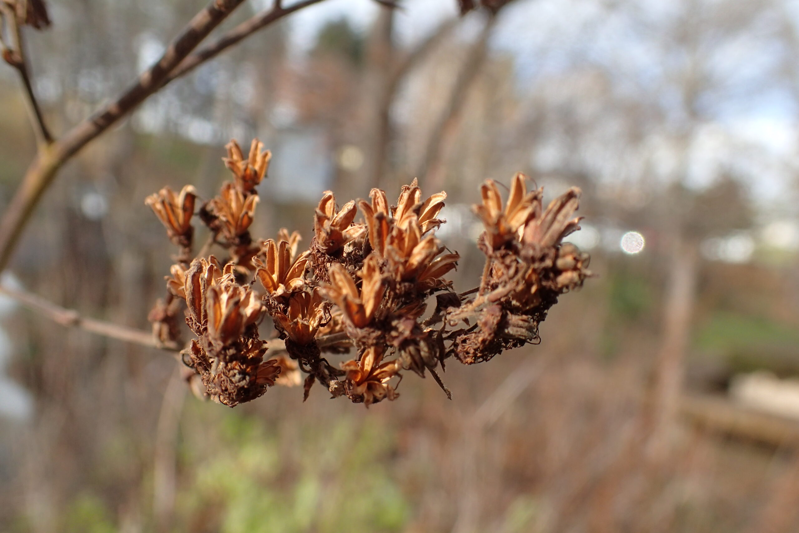 ホザキナナカマドの袋果が5つに裂けているのが見えます。