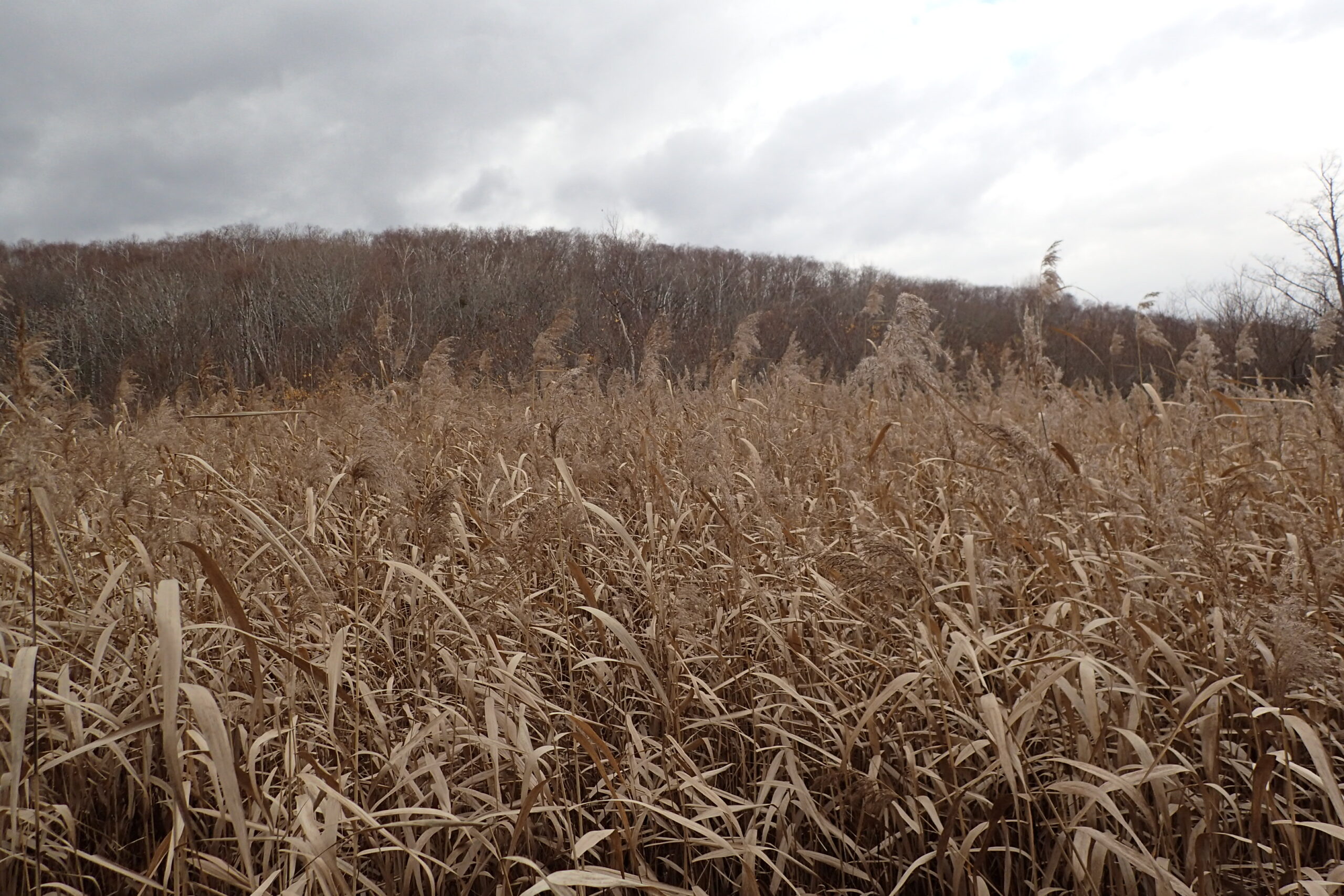 風にヨシが揺れています。湿原の色合いもすっかり晩秋ですね。