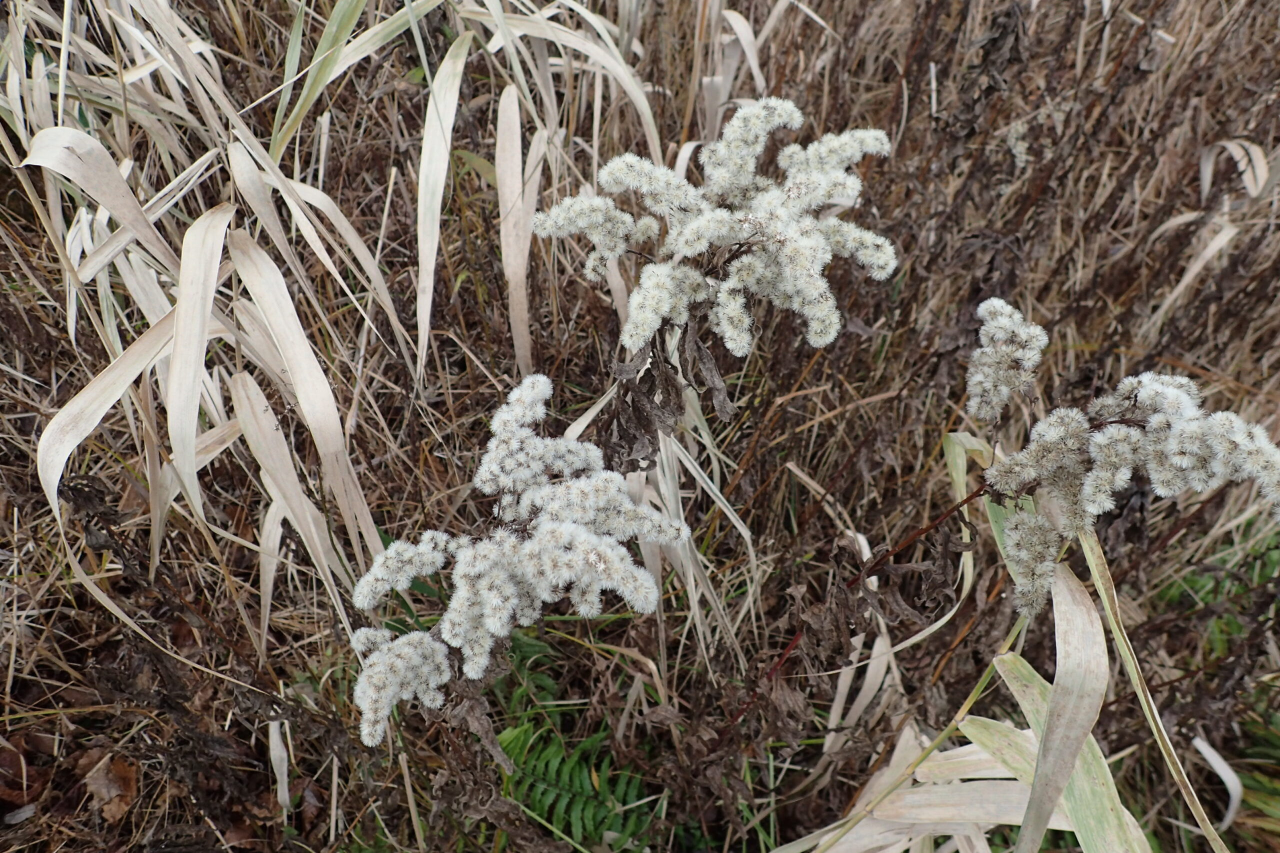 夏に黄色い花を咲かせていたオオアワダチソウがフワフワの冠毛が湿原で揺れています。