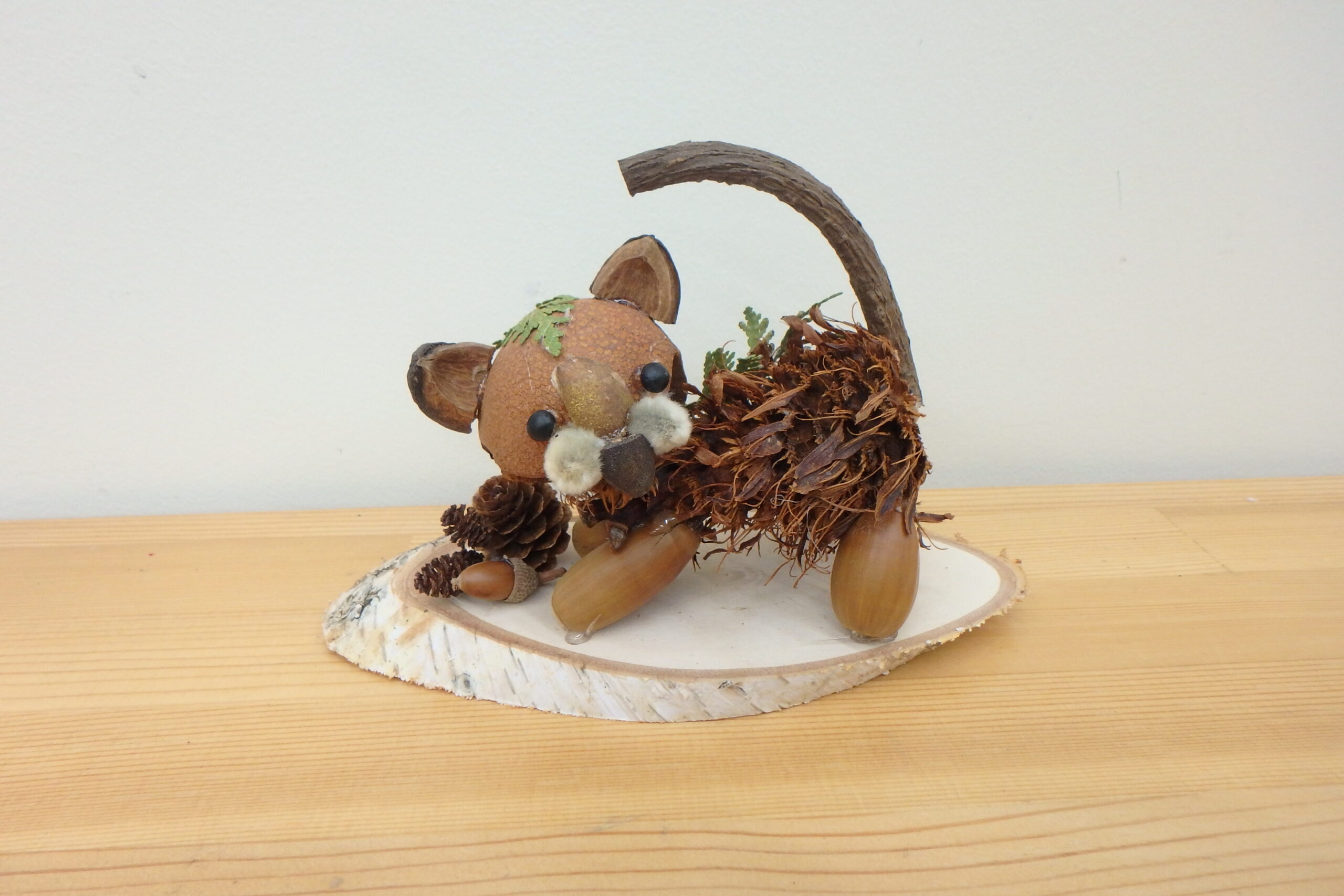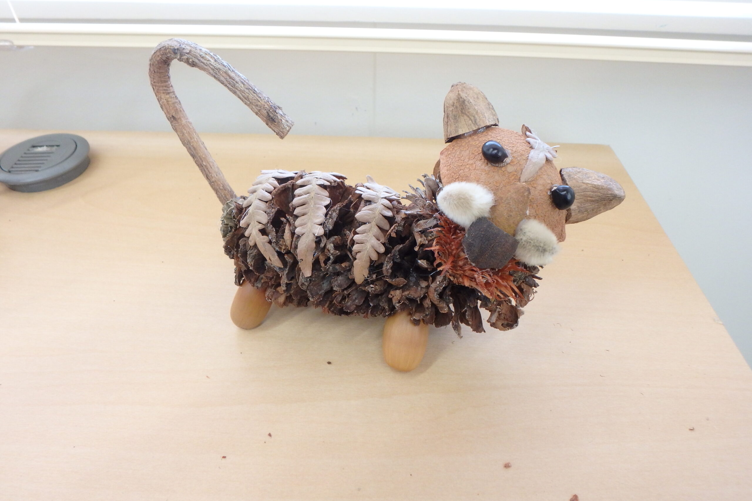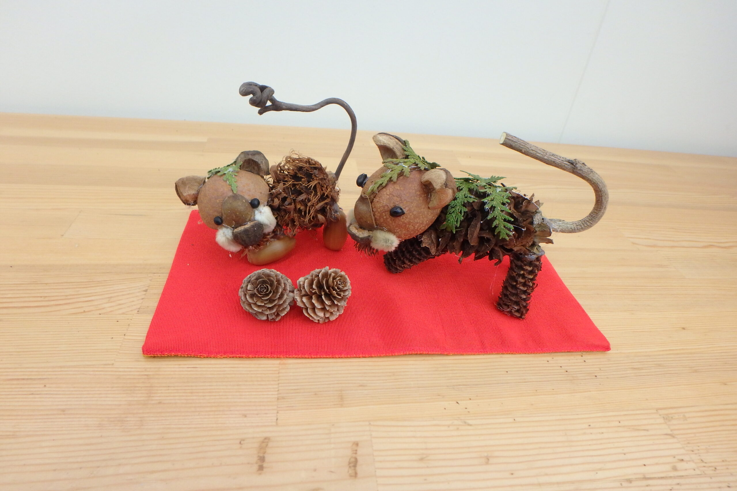 寅の他にも、カンガルー、クワガタ、テントウムシ、ワンちゃんなど、マツボックリやトチノキの果皮などを使って作ってみましたよ。