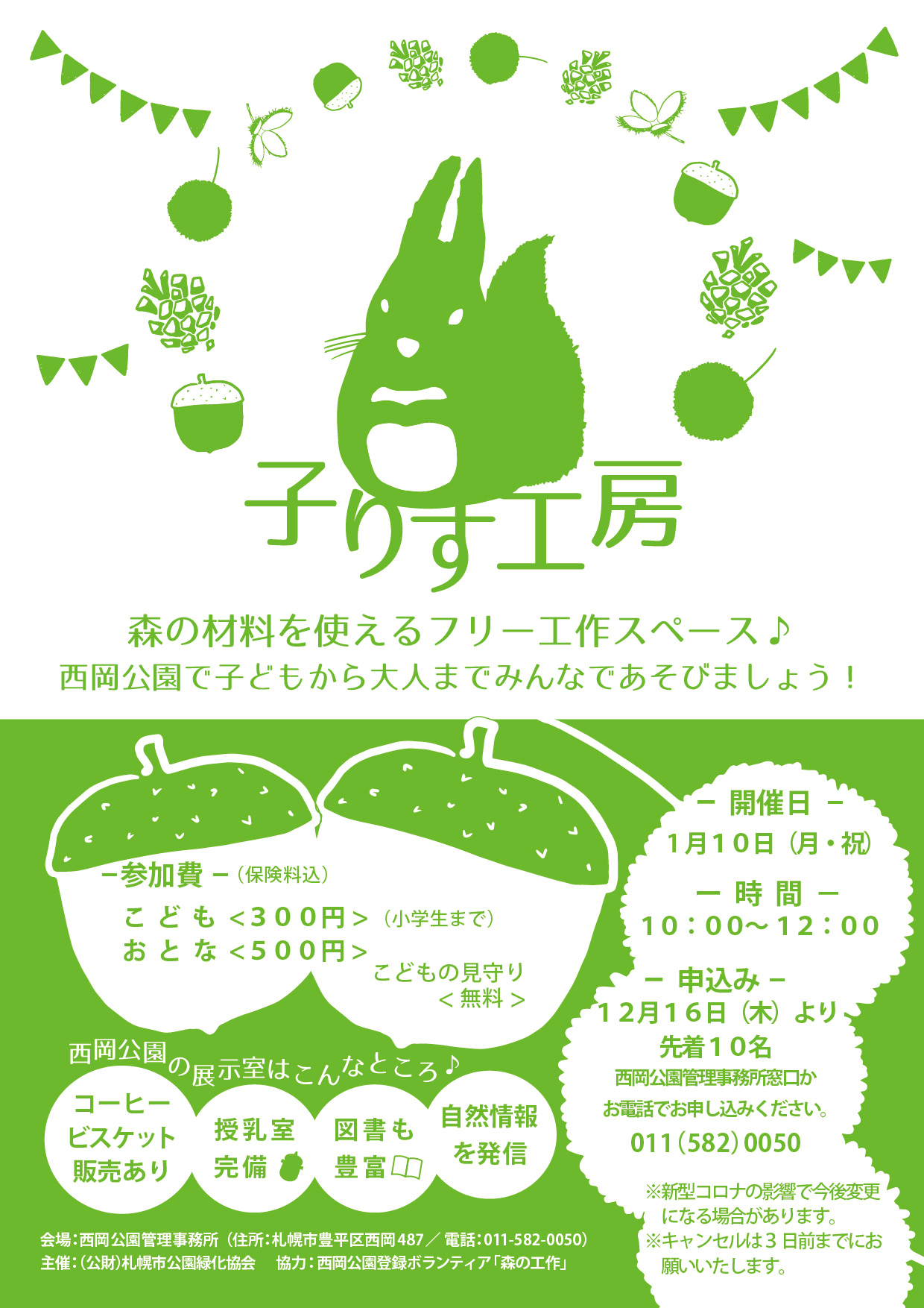 次回の子りす工房は1月10日(月曜日・祝)に開催予定です。