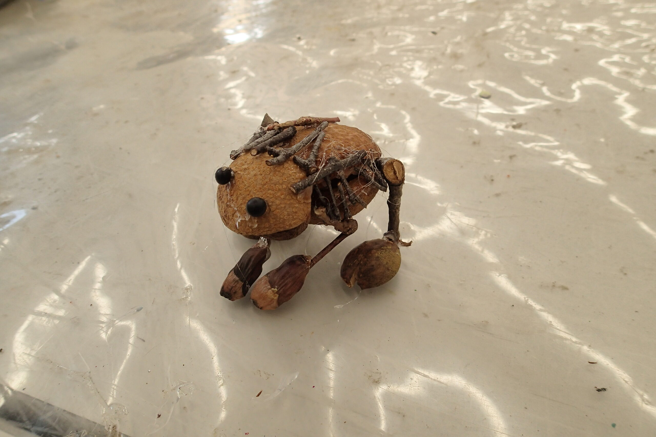 木の実で作った動物作ったいろいろな生きものたちやリース、オブジェなど、参加者の皆さんは自分の作りたいものを作れます。