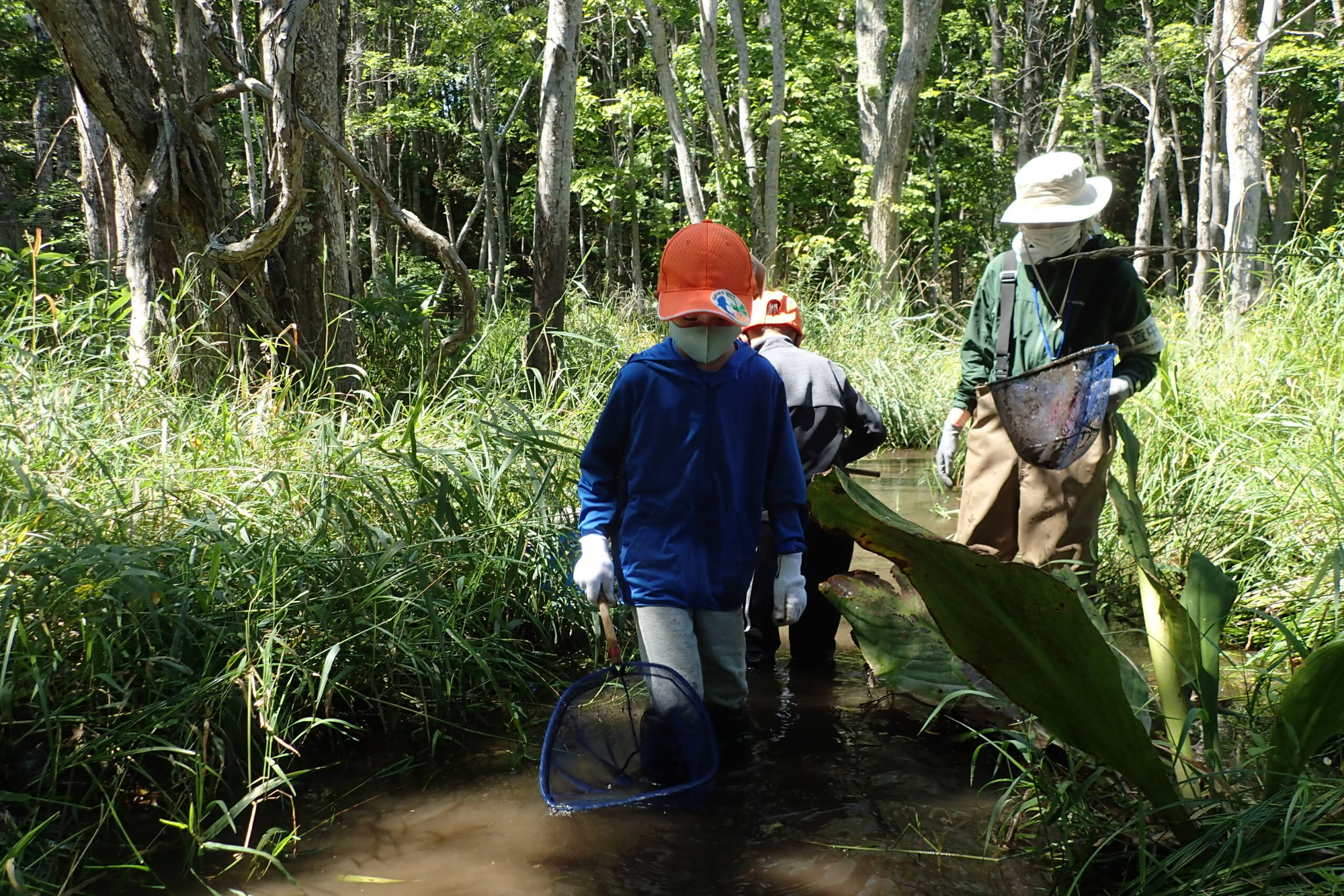 採集から標本、報告ポスター制作など、活動全体を通して、北海道トンボ研究会の皆さんにご指導いただいています。