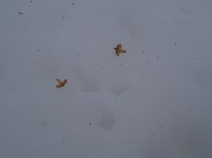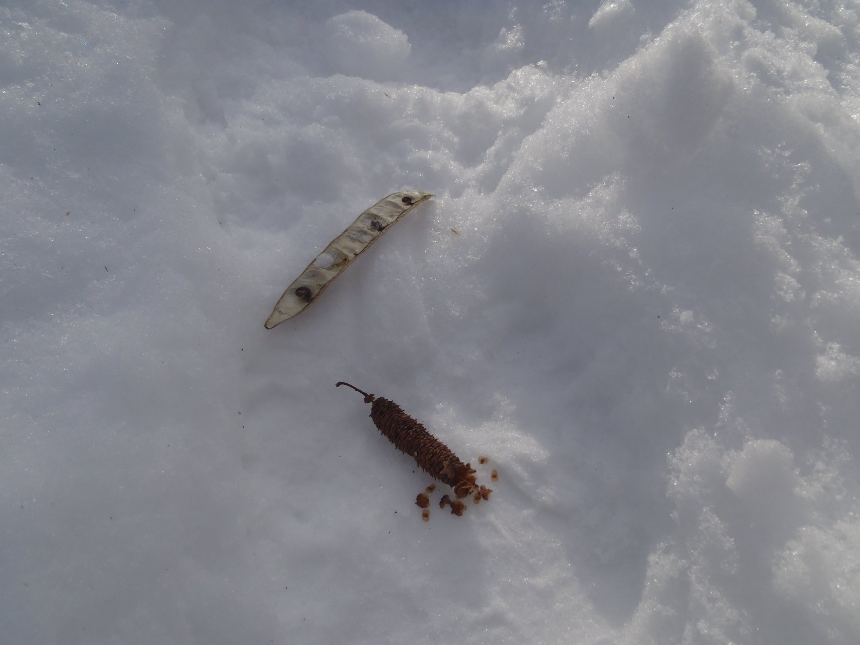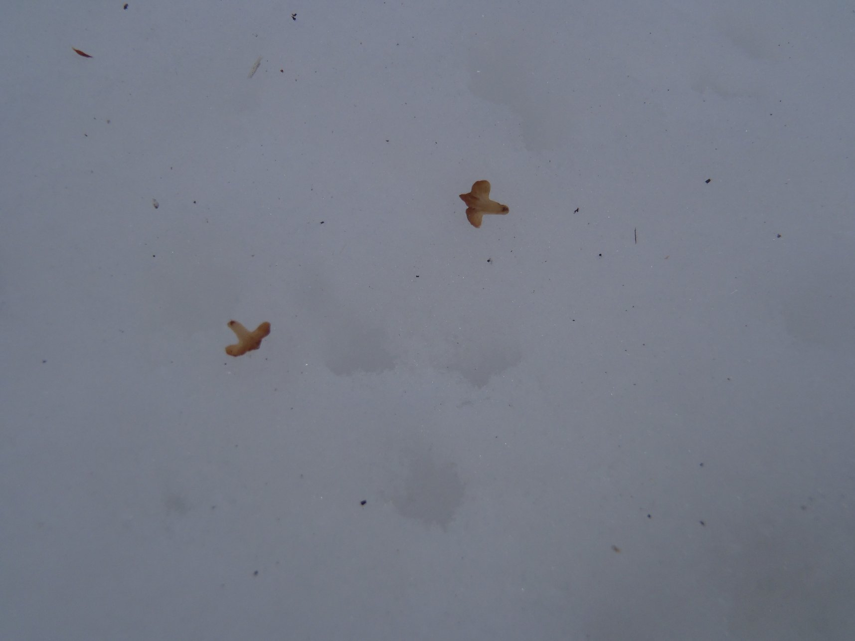 雪の上には、バラバラになった小さな種もたくさん落ちていましたよ。