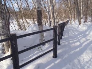 1月末に、水源池の東側の木柵が、一部新しくなりました。