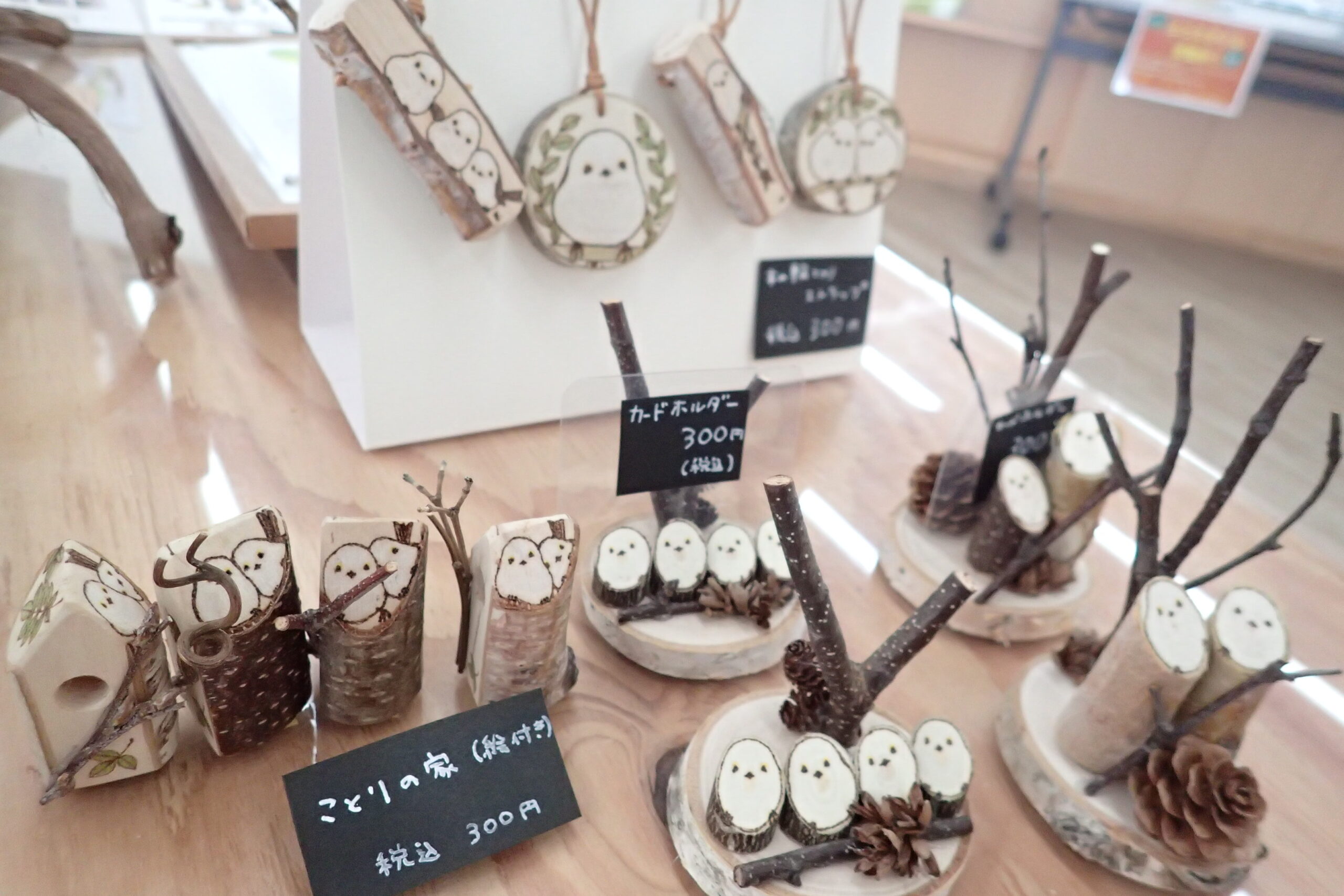 西岡公園の間伐材などで作られた、シマエナガのクラフト品も販売中です。