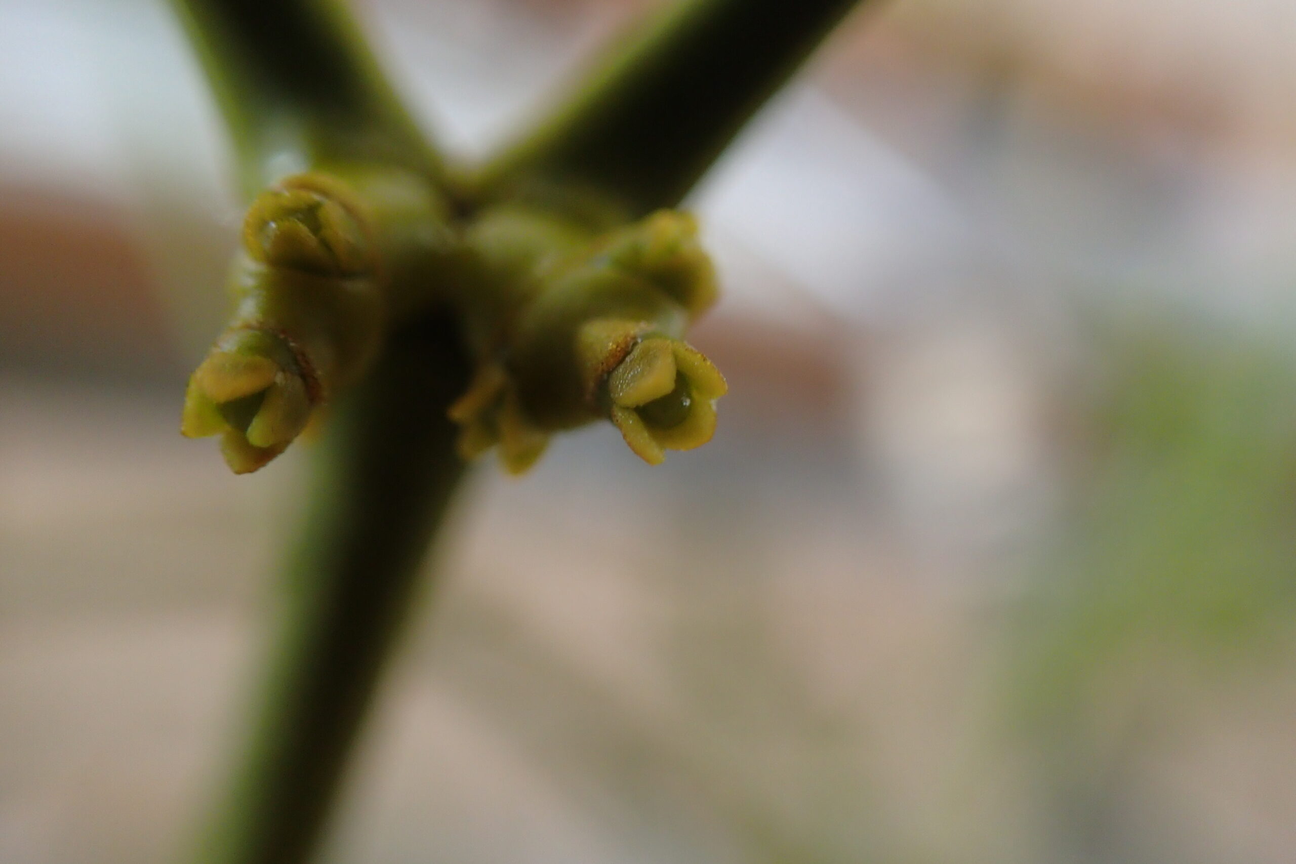 小さな花も咲いています。ヤドリギは木の高い所にあるのがほとんどなので、花を目にすることはなかなかないと思います。