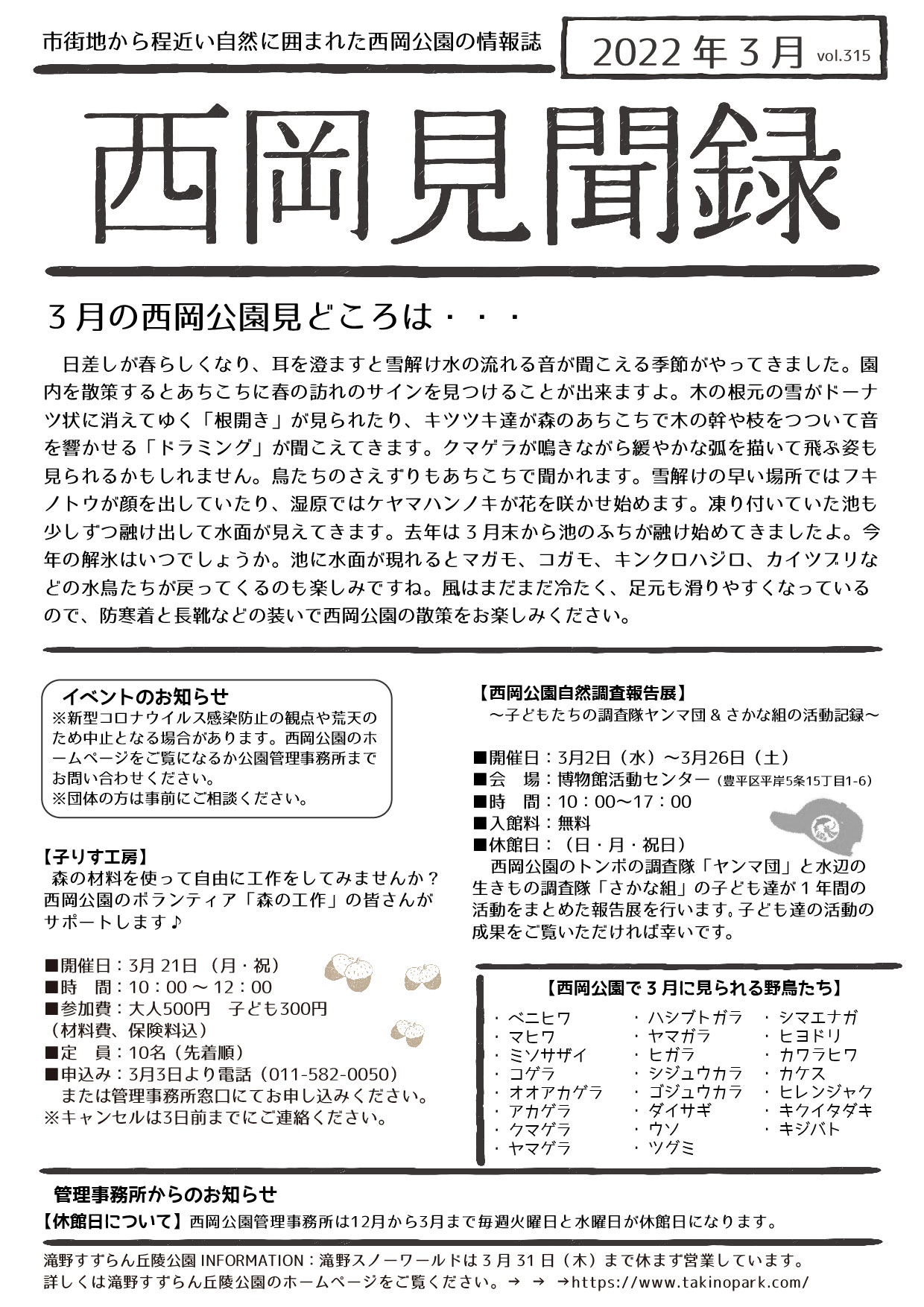 そんな西岡公園から「西岡見聞録」3月号を発信いたします。