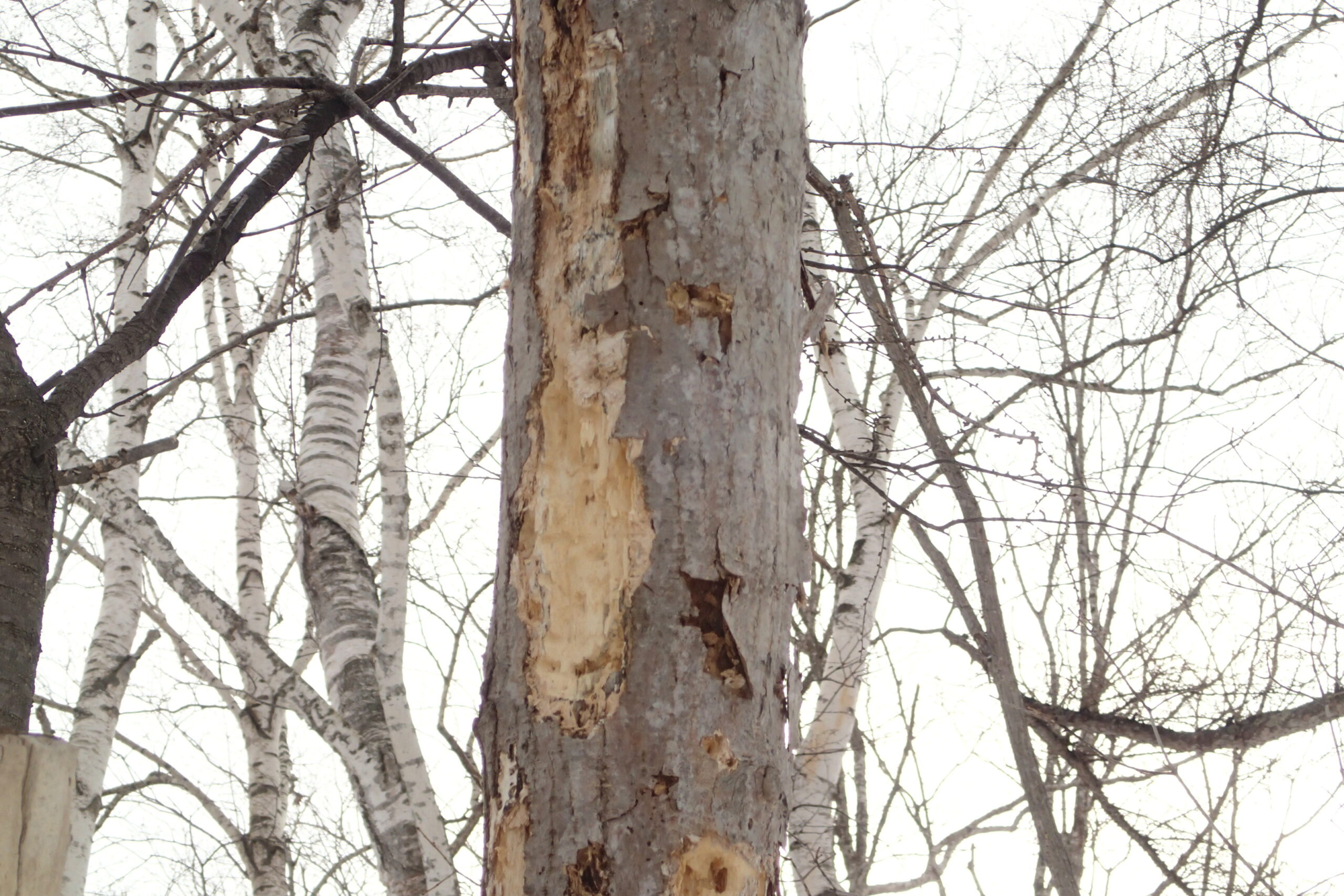 そばにアカゲラがいて木をつついていたので、これもアカゲラの仕業でしょうか。