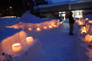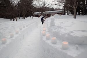 今年はスタッフがスノーキャンドルをつくり、来ていただいた皆さんには点灯したところを楽しんでいただく、という形での開催となりました。