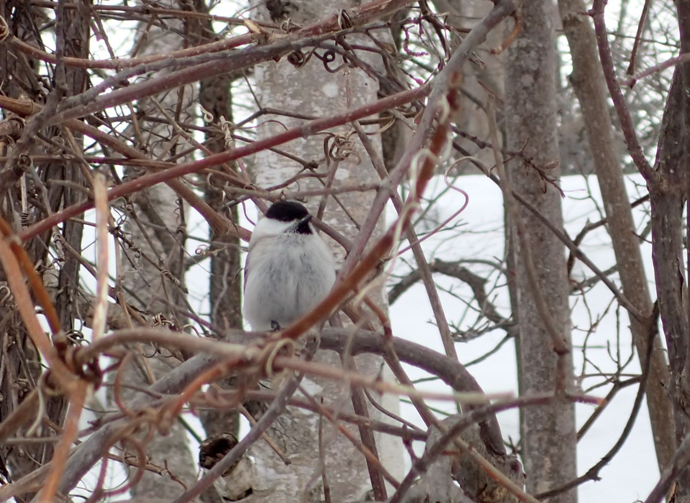 ヤマブドウが絡まる茂みにはハシブトガラも見られましたよ。西岡公園では一年中見られる留鳥です。