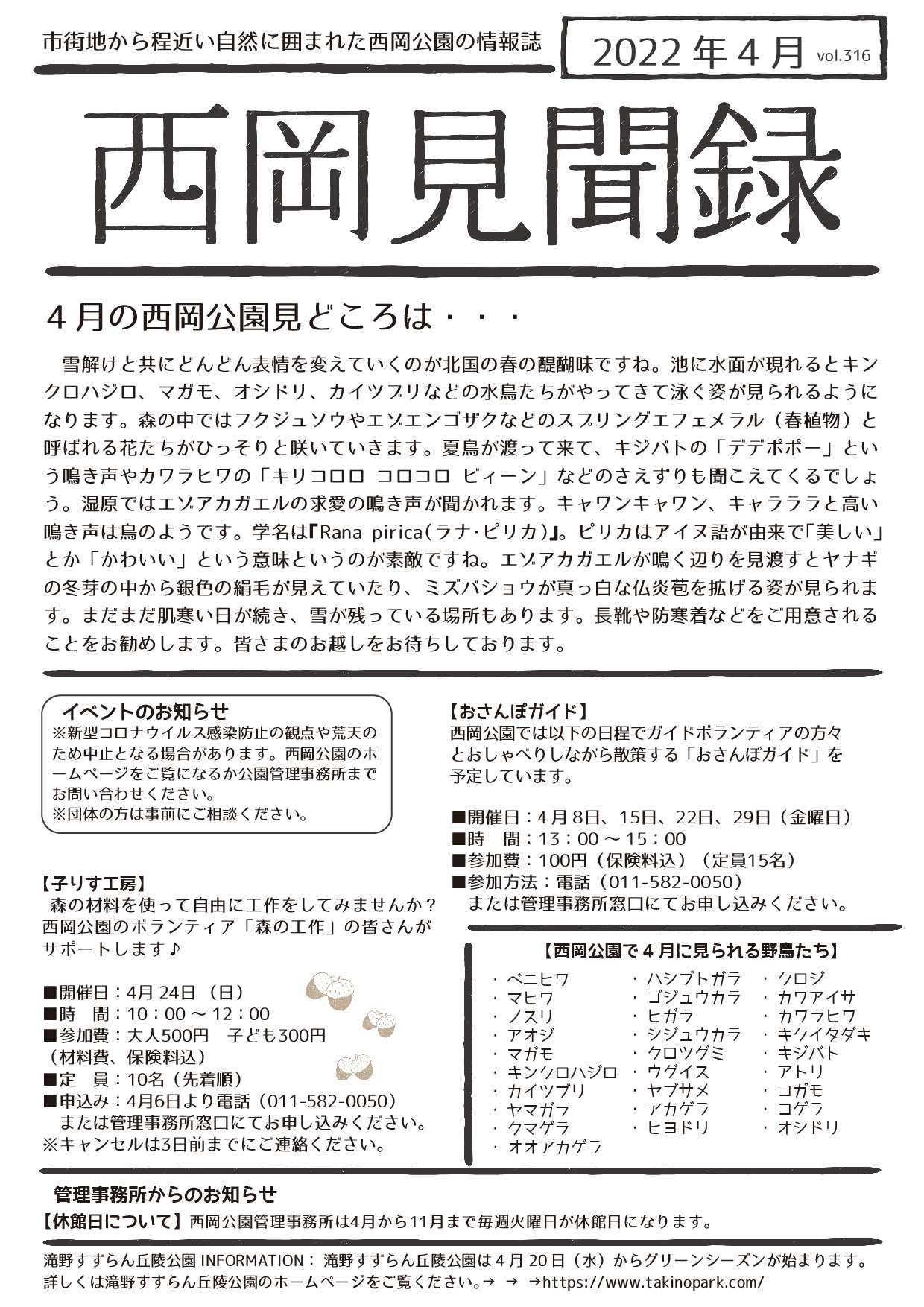 そんな西岡公園では「西岡見聞録」4月号を発信いたします。