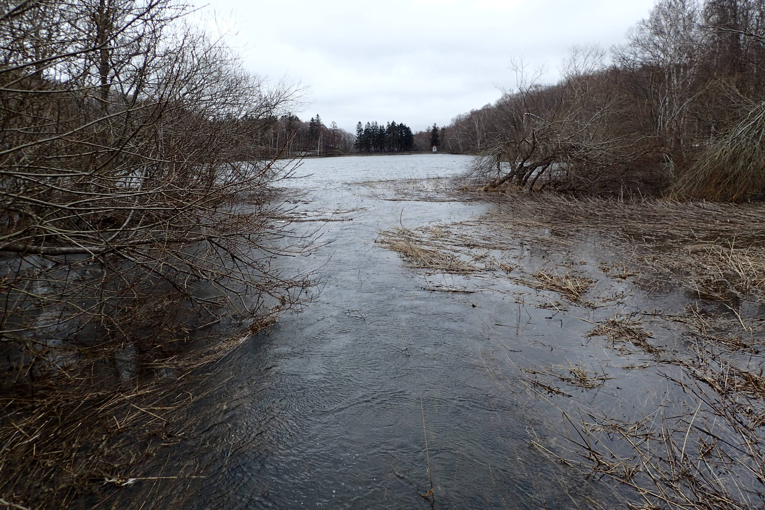 池の氷はようやく全部融けました。去年は4月1日にはほぼ全面解氷していたので、去年より遅くなりましたね。