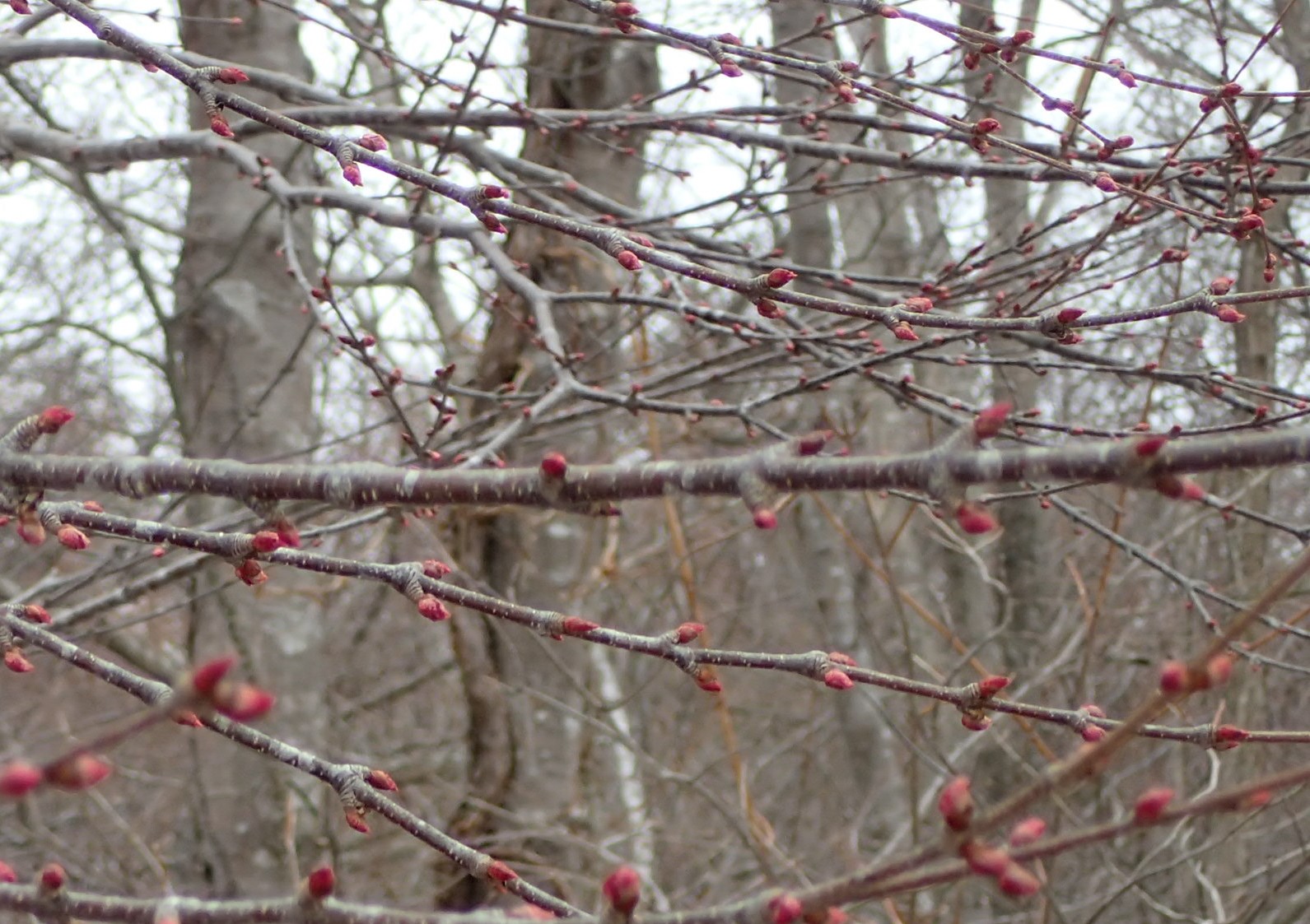 カツラの冬芽が膨らんで赤くなっています。