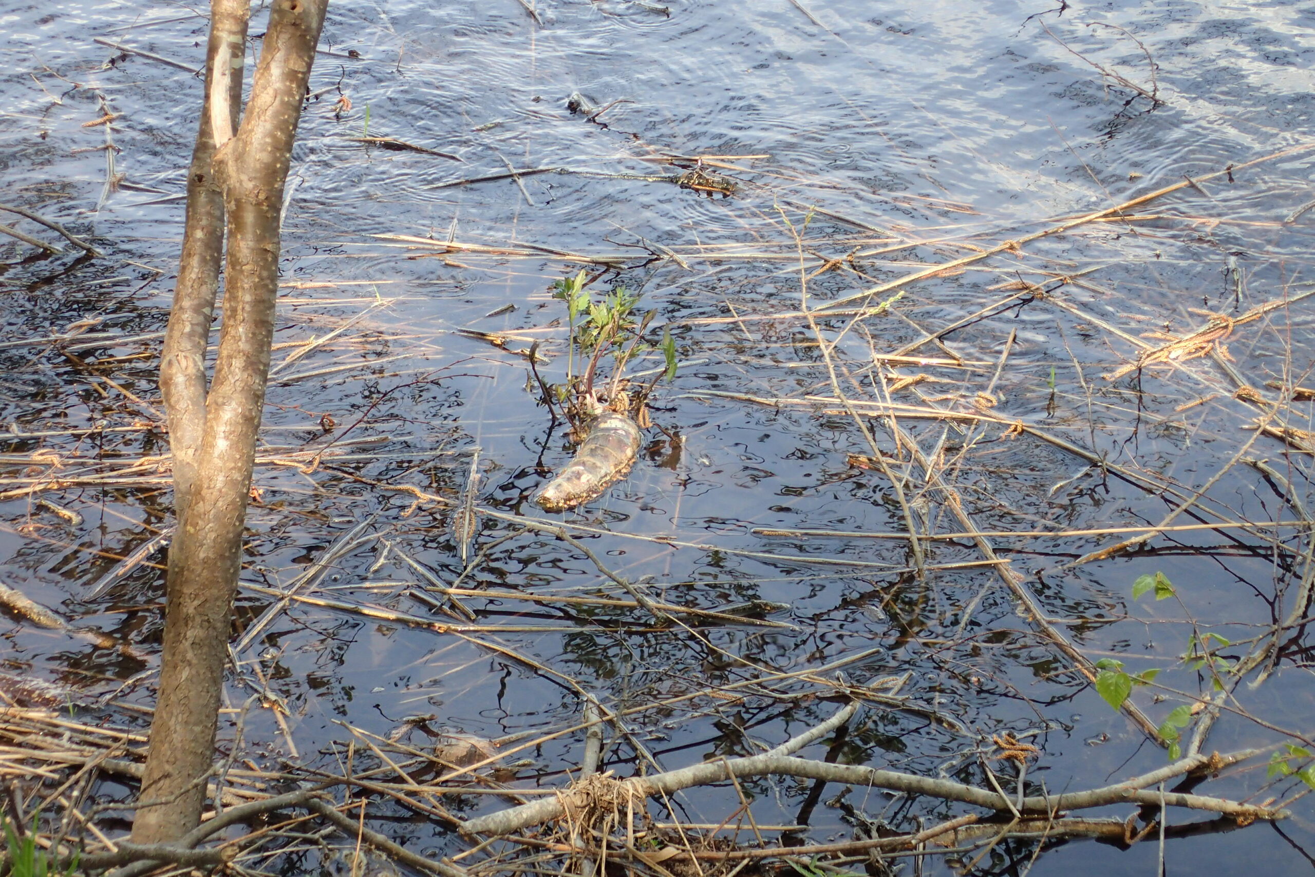 湿原から流れてきたドクゼリの根から芽が出ていましたよ。