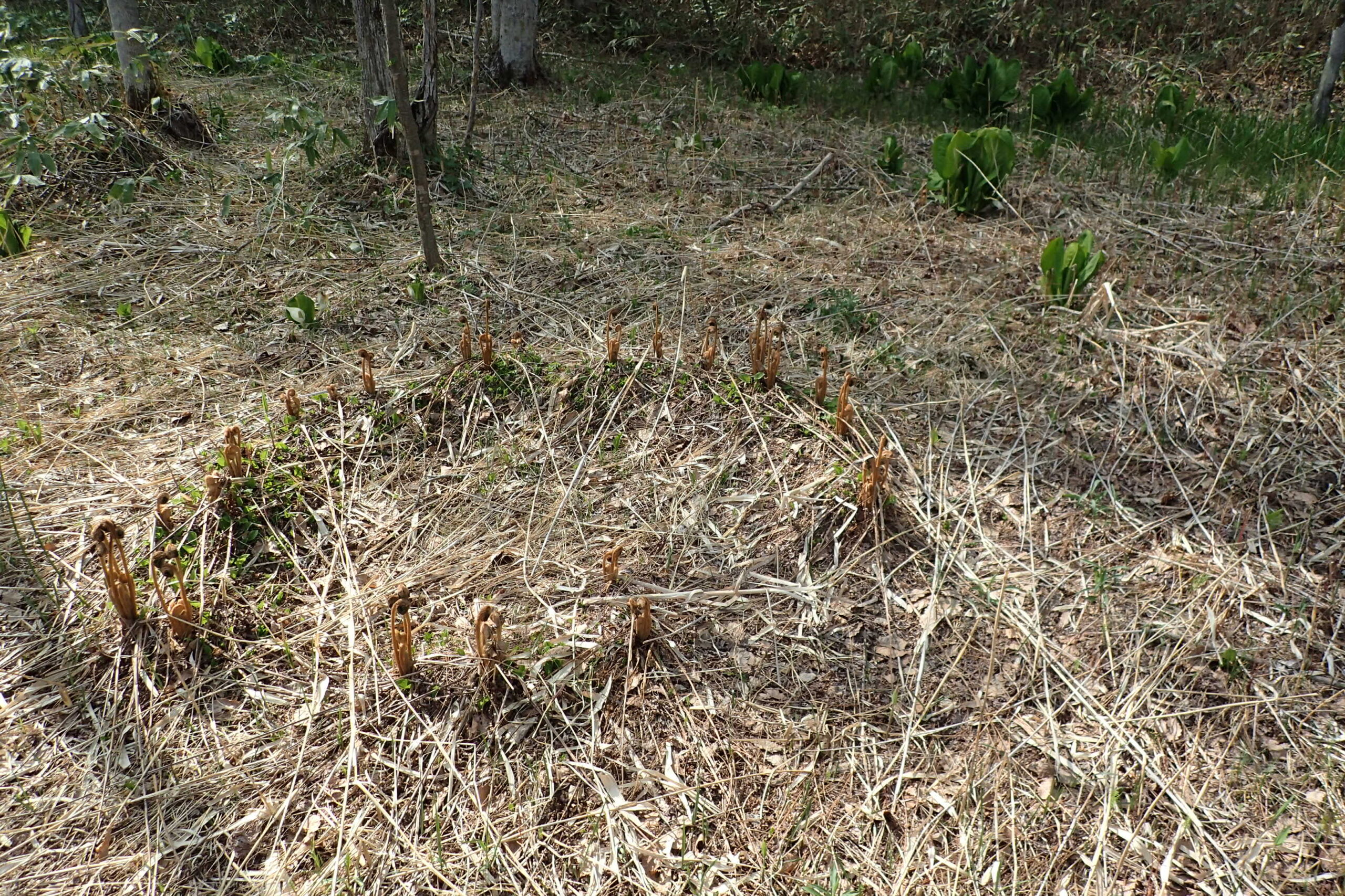 湿原の木道からはヤマドリゼンマイの芽が見えました。輪になっていますね。
