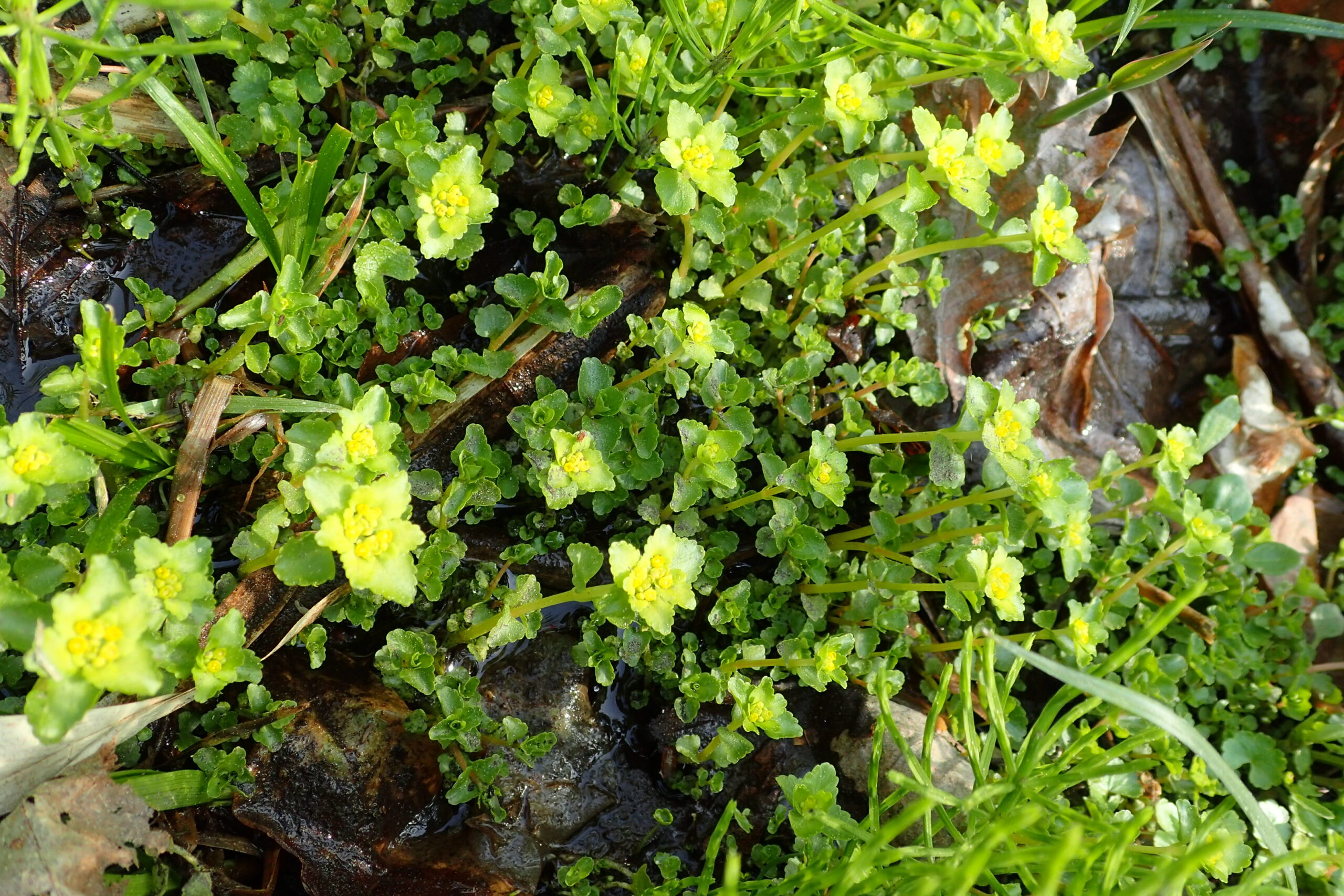 広場に面した湿地のふちにはやわらかい黄色のネコノメソウが咲いていました。