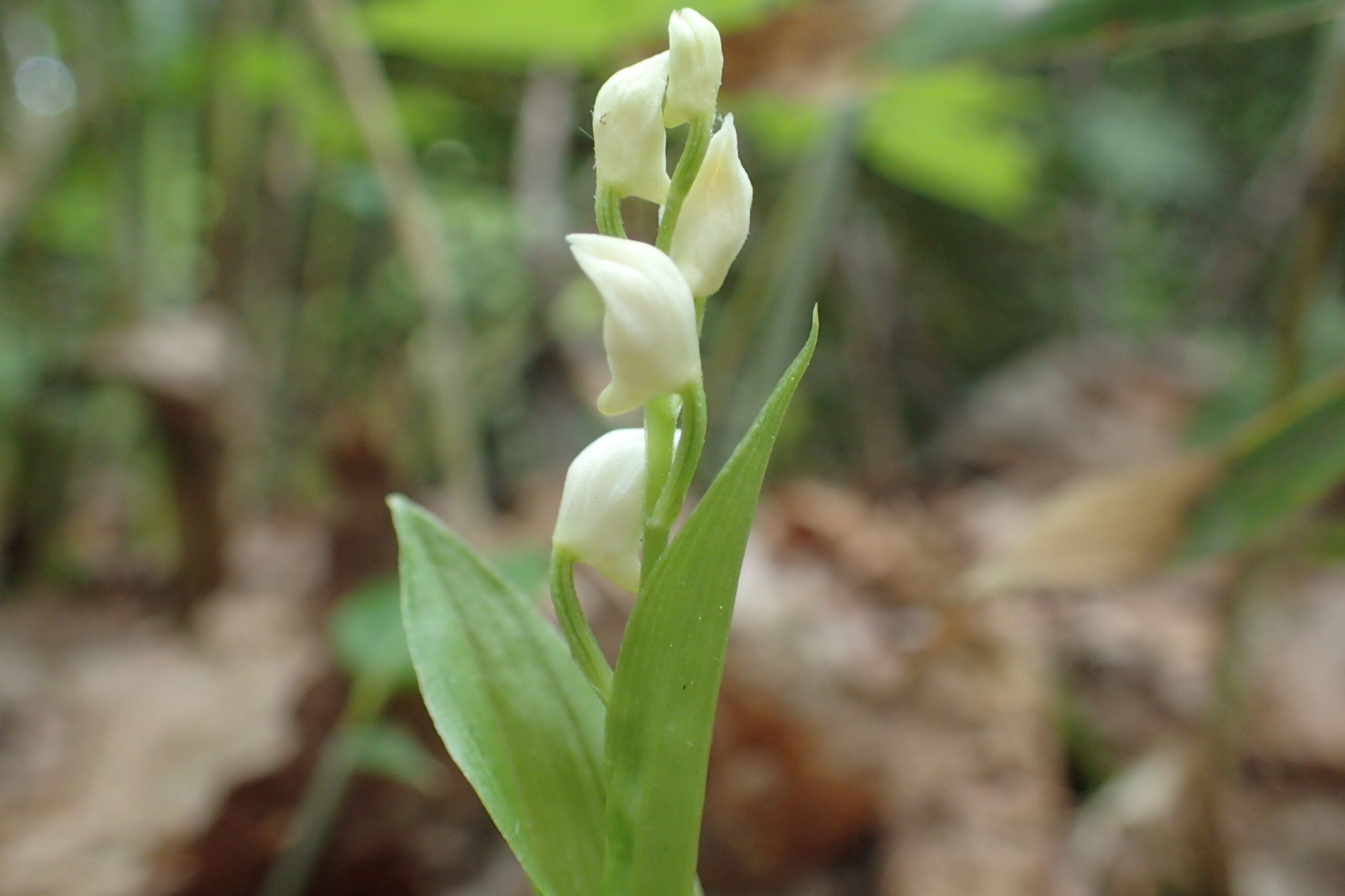 森の中の足元に、10cm程の背丈のギンランを見つけました。