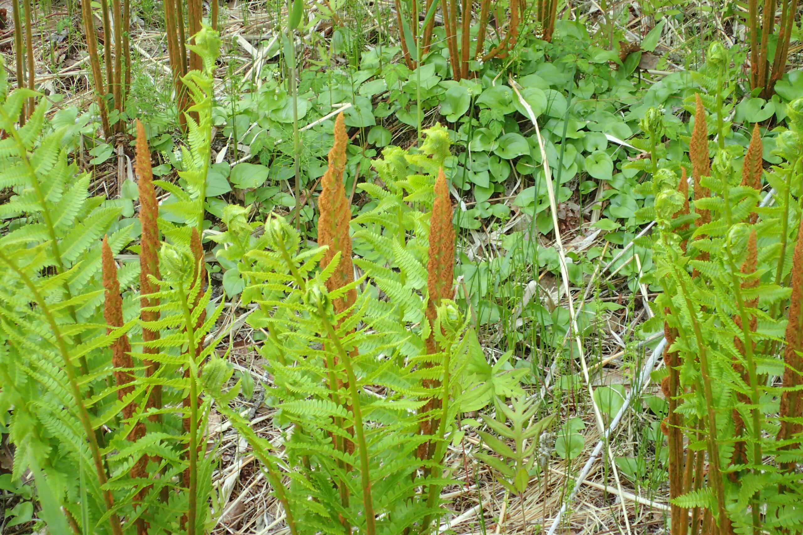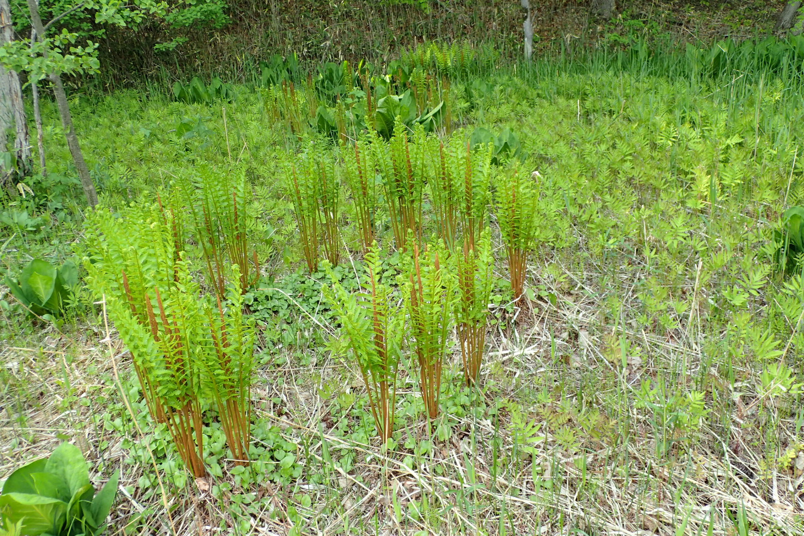 ヤマドリゼンマイです。名前の由来は直立する赤褐色の胞子葉をヤマドリの尾に見立てたのではないかという説もあります。