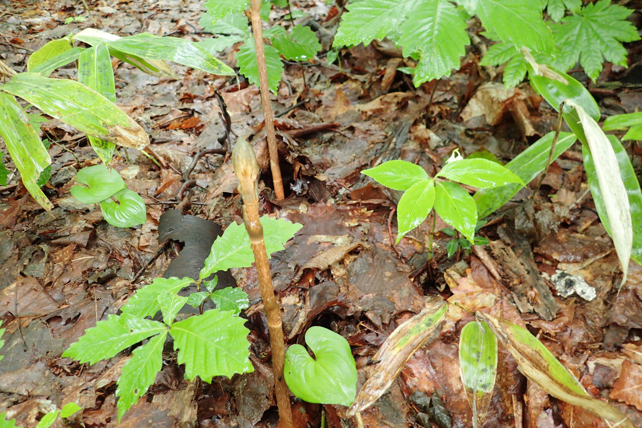 アスパラガスのように、ニョキニョキ地面から生えているのはオニノヤガラ。ランの仲間ですよ。