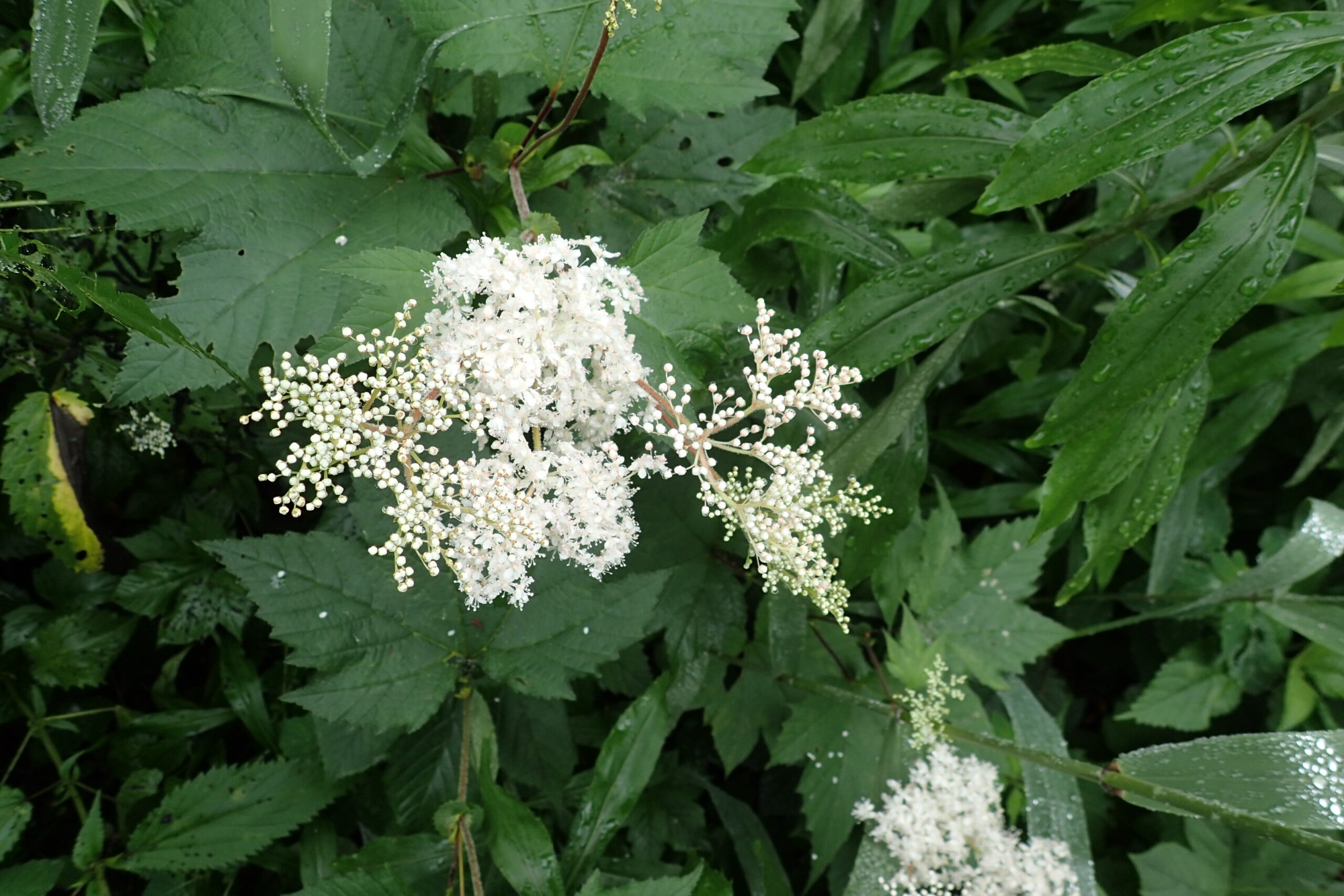 湿原にはオニシモツケが白いフワフワの花を咲かせています。