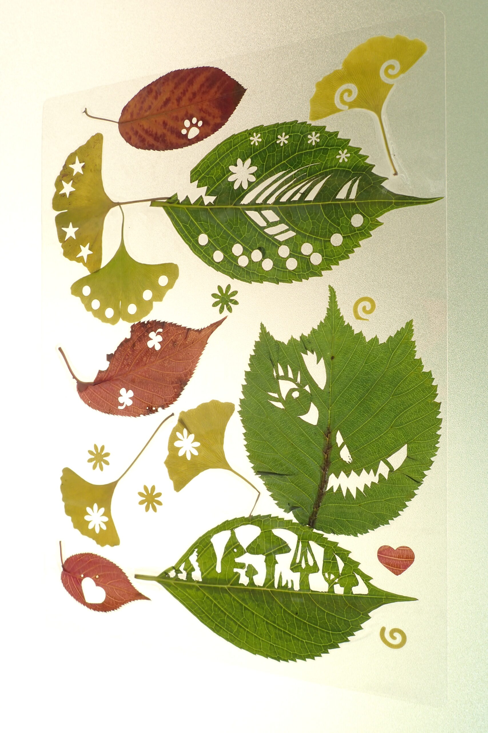 これはカッターナイフを使い、葉脈を利用して芸術してみましたよ。