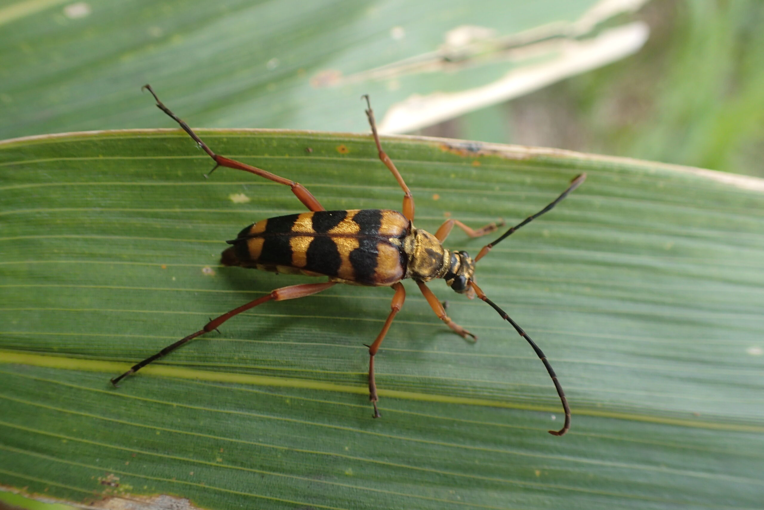 ヨツスジハナカミキリもいましたよ。飛ぶとハチのような羽音がしましたよ。