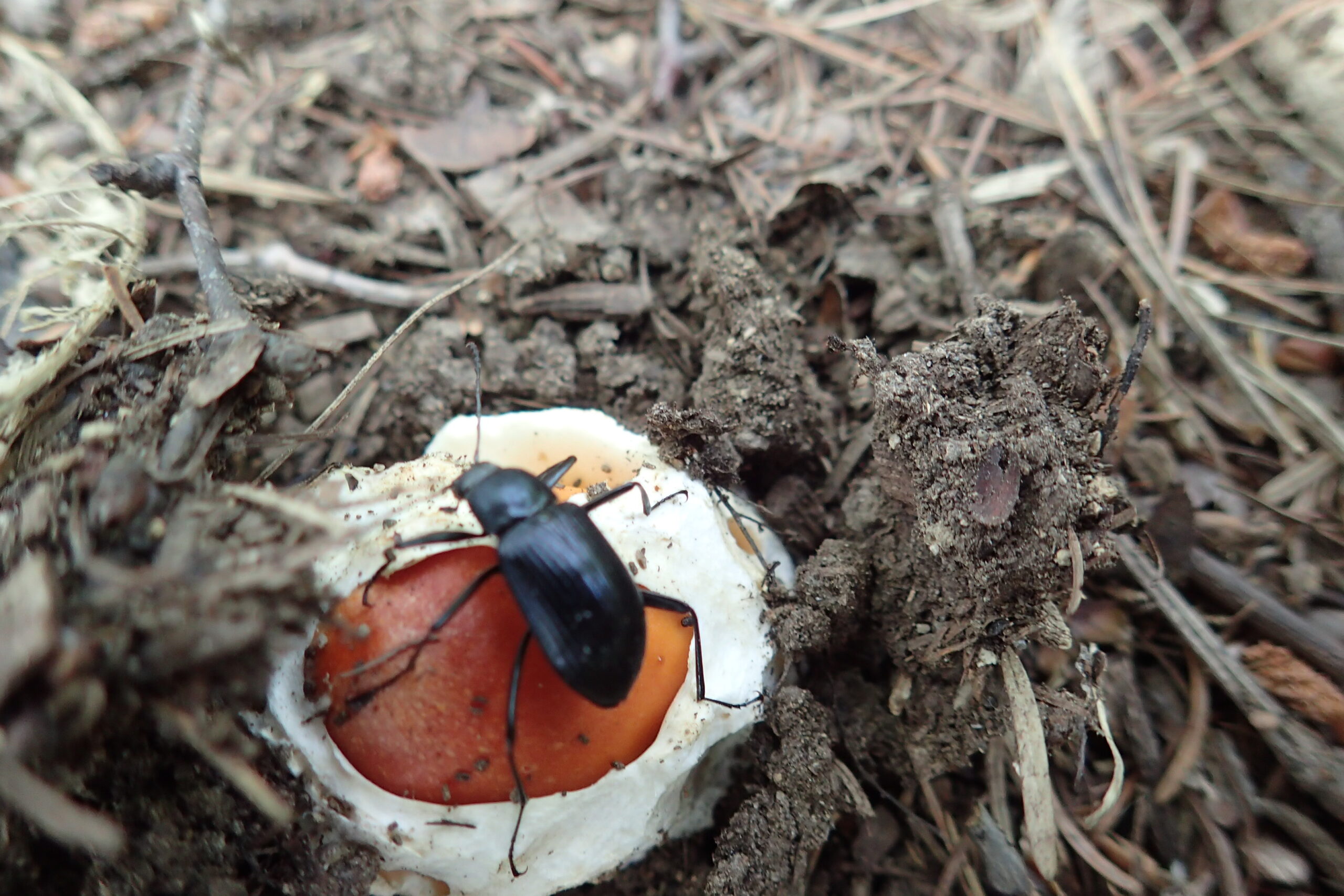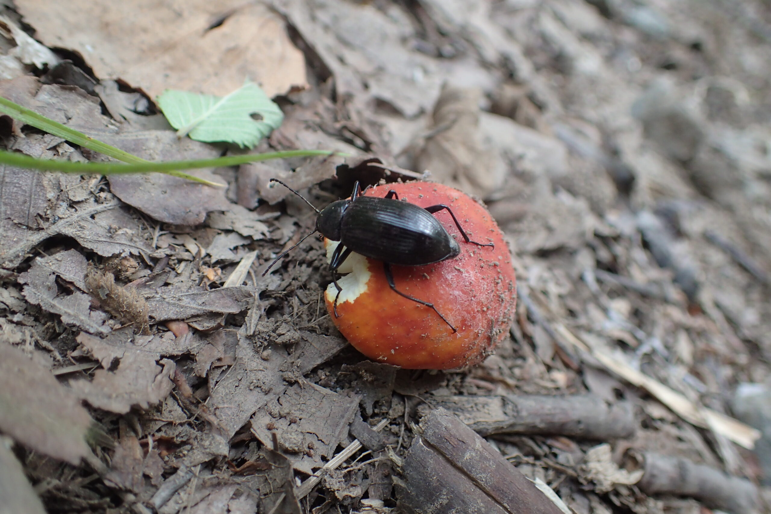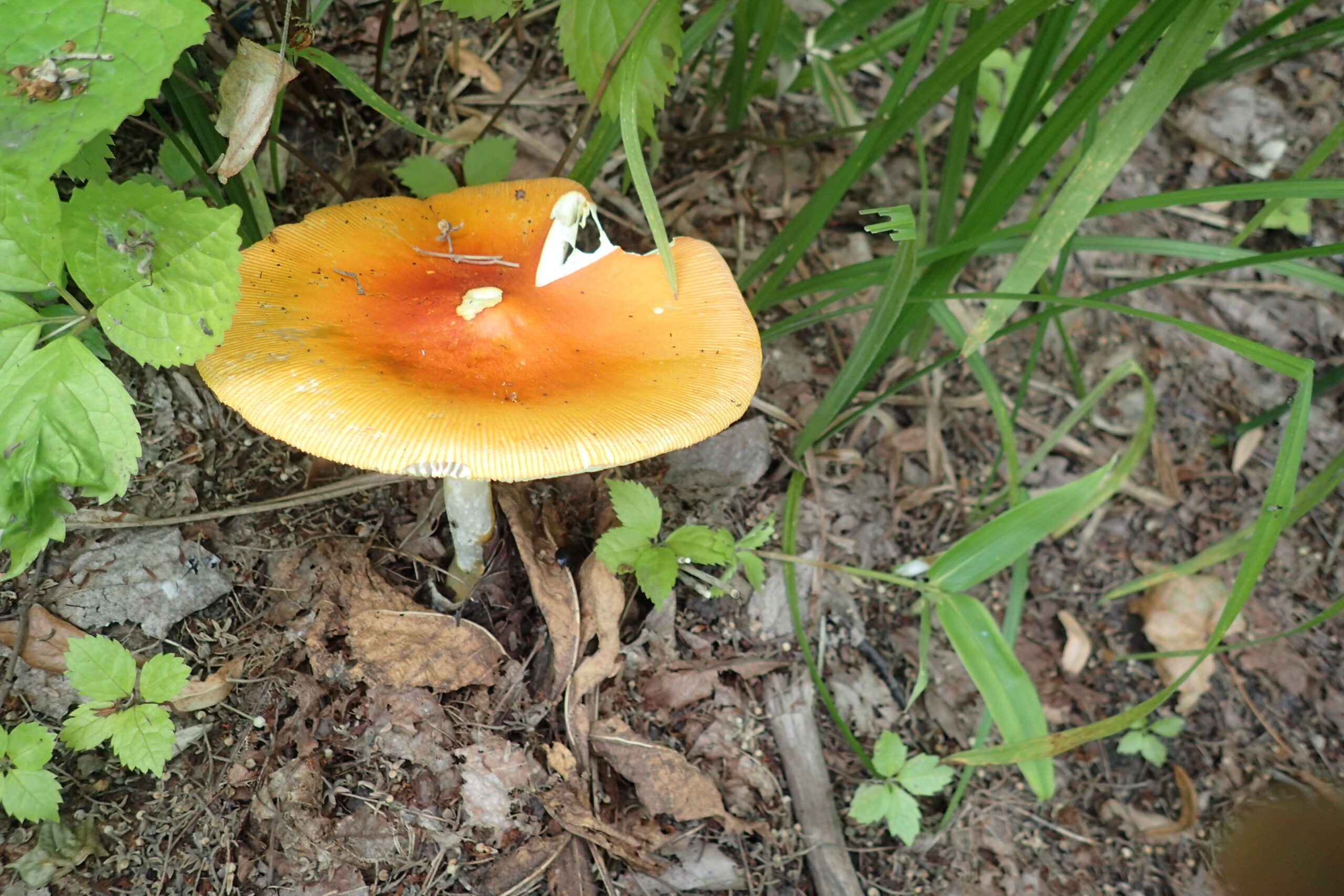 園内を歩いているとオレンジ色のキノコや