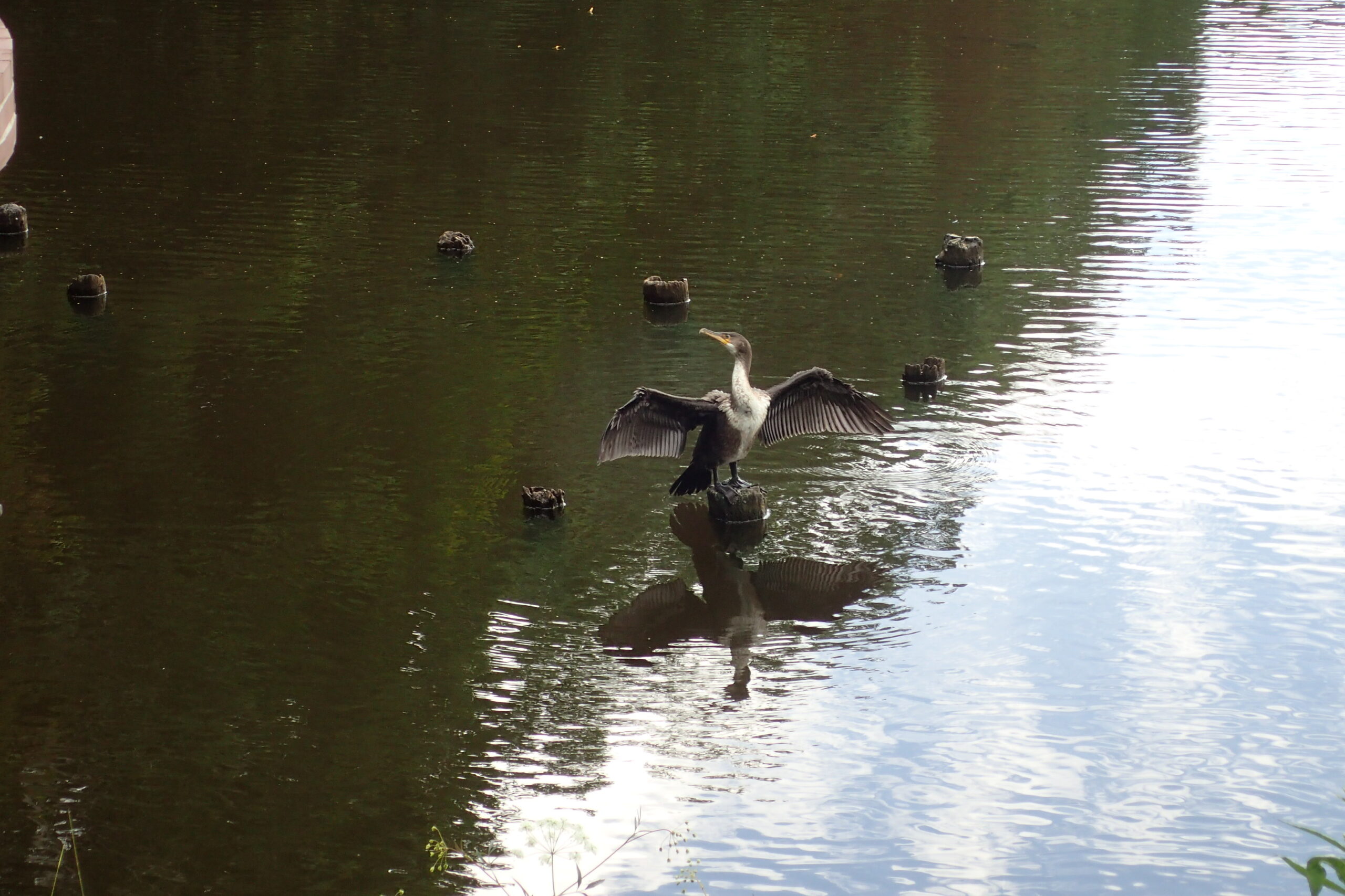 池にはウミウが羽を広げる姿がありました。ここ数年この季節に見かけます。