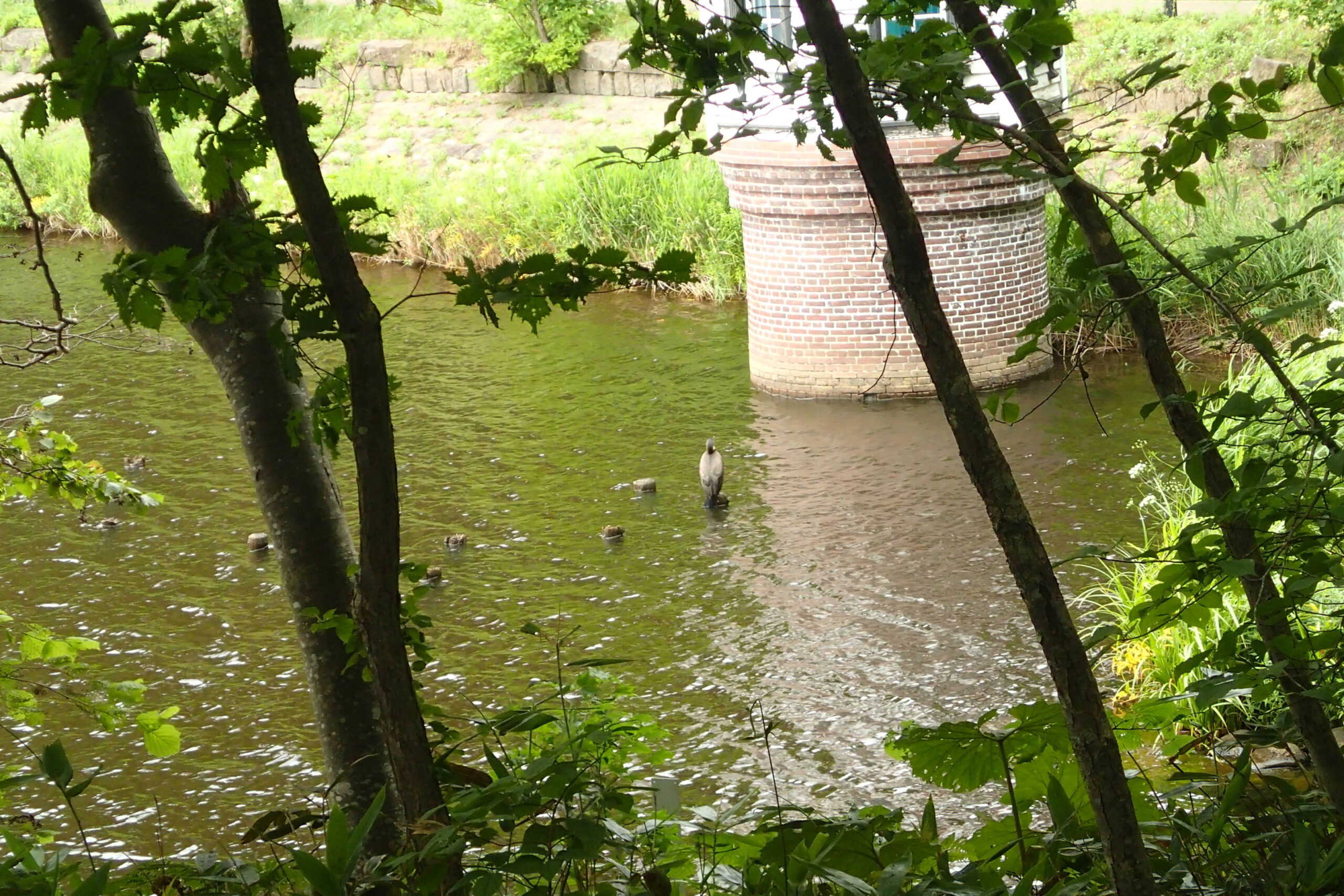 取水塔の横では、この頃見かけるウミウもじっとしていました。