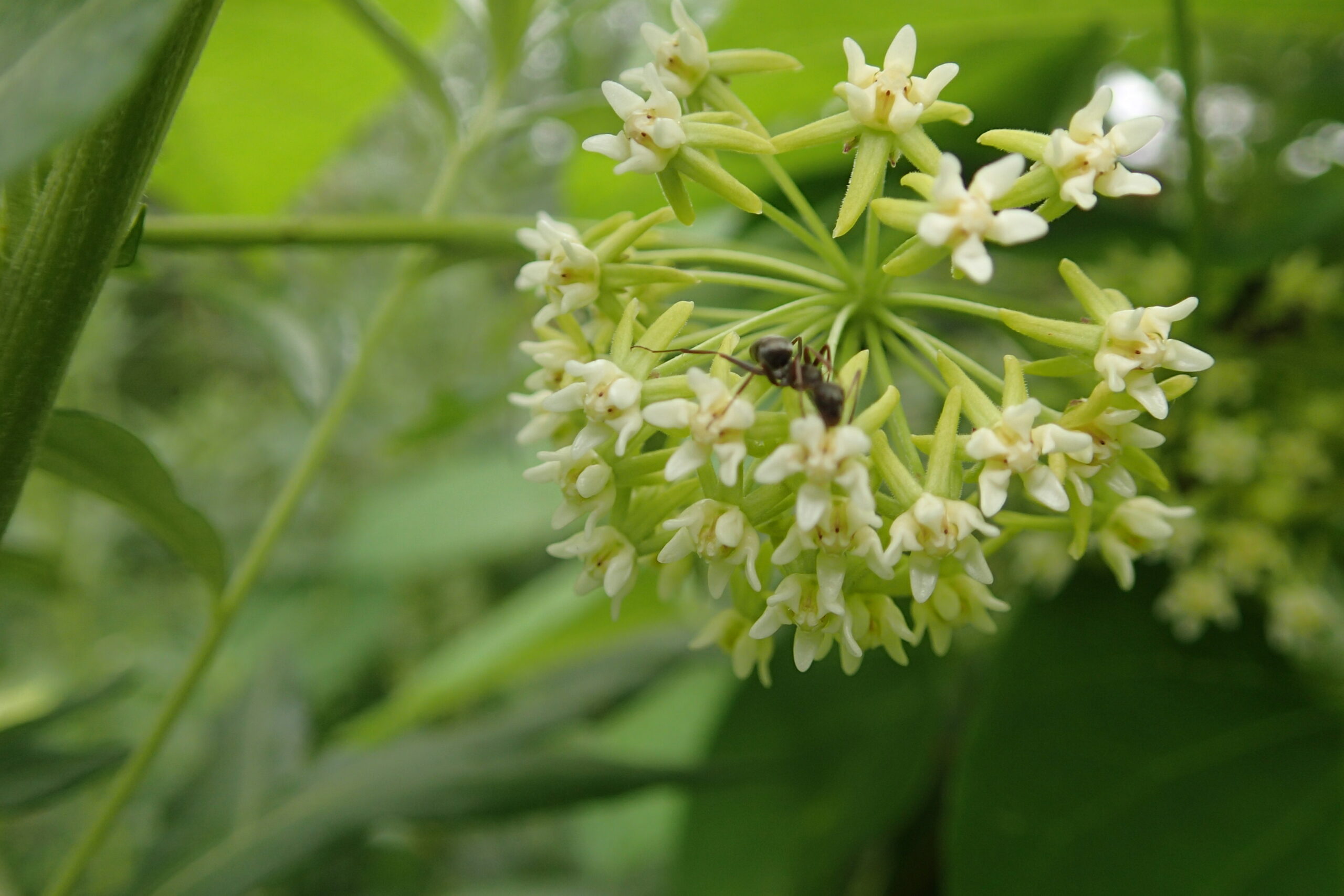 イケマの花にもアリが来ていました。イケマもガガイモと同じくキョウチクトウ科の植物です。