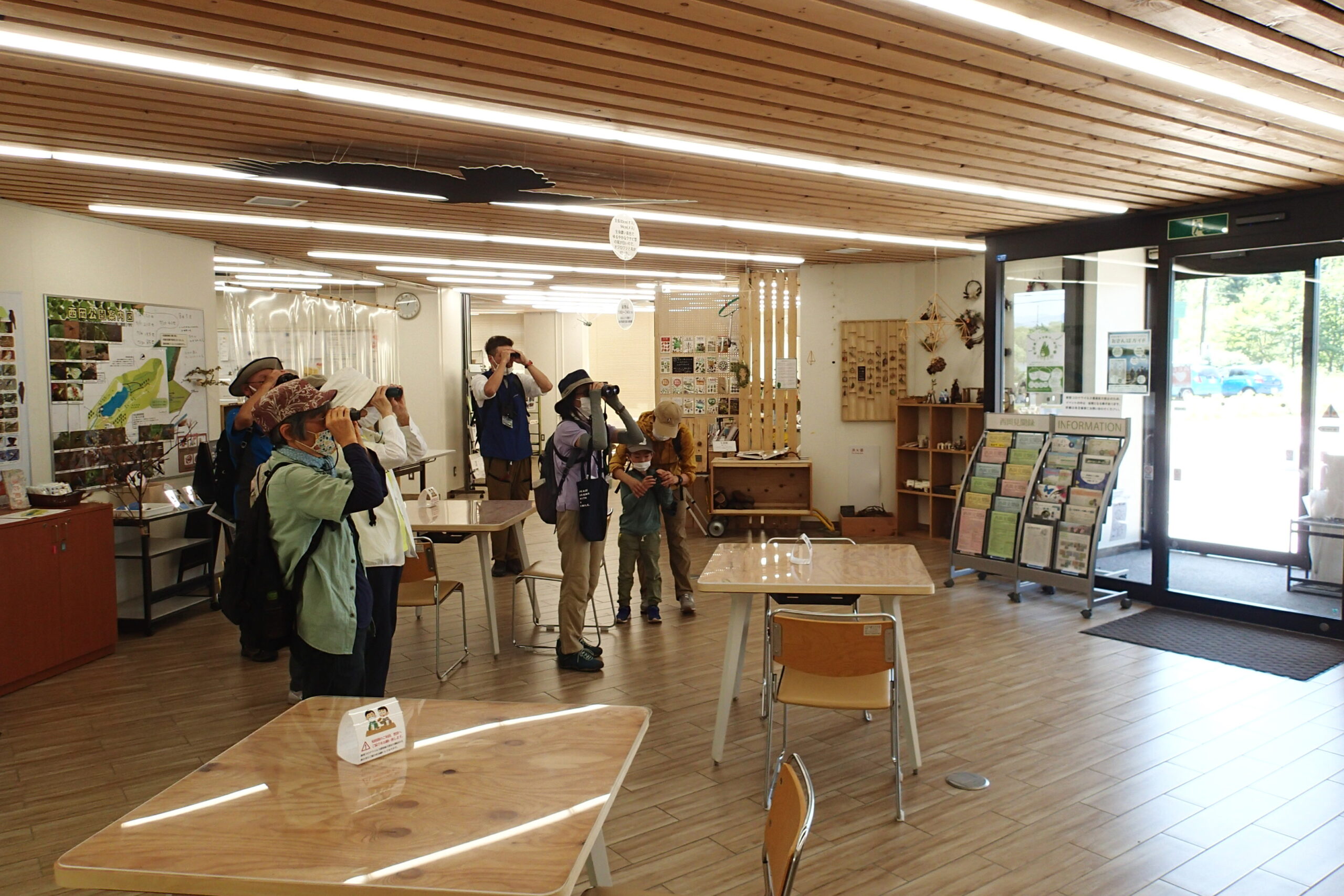 今日は鳥たちの観察もしようと双眼鏡の使い方の練習をしてから出発しましたよ。