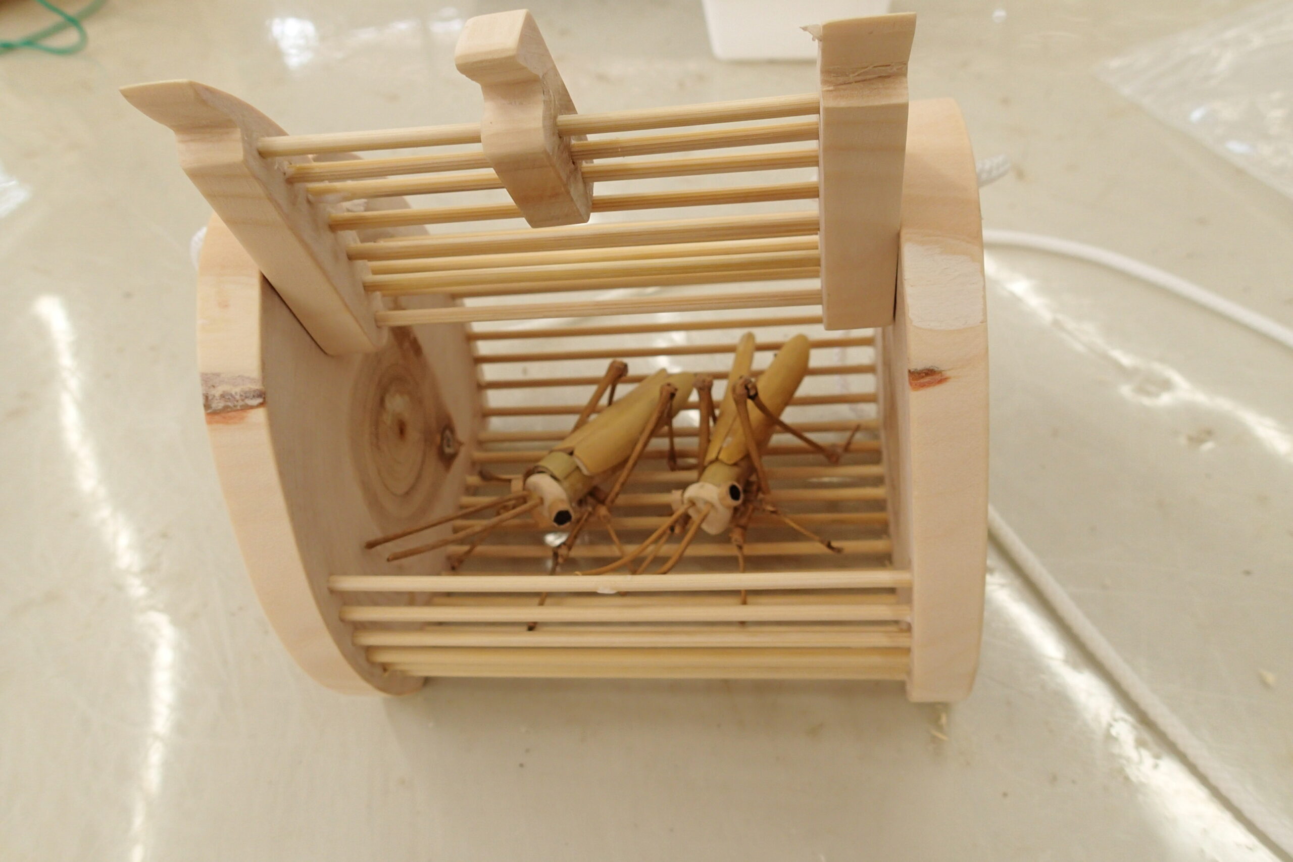 今回は間伐材と竹のキットを組み立てる「虫かご」もありましたよ。