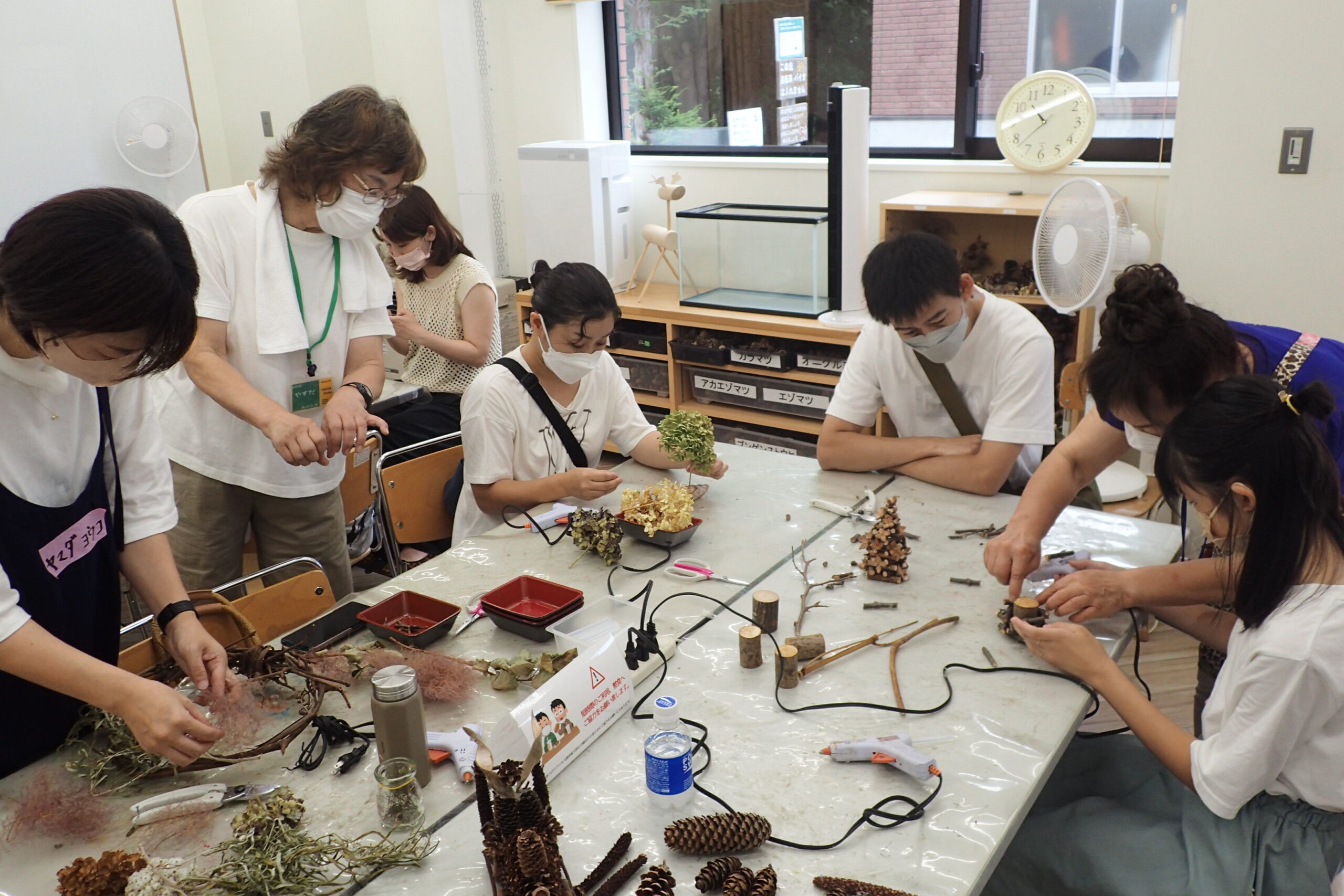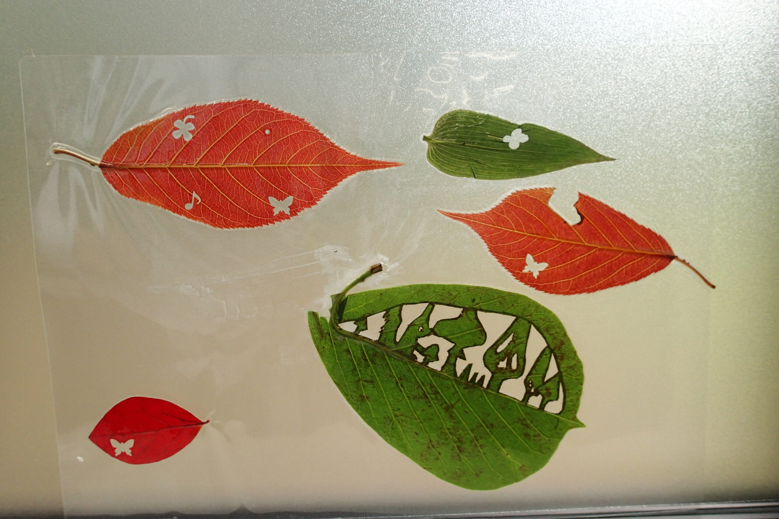 リースを作る方や、オブジェ、葉っぱをカッターで切り絵のように切り抜く「葉っぱアート」。