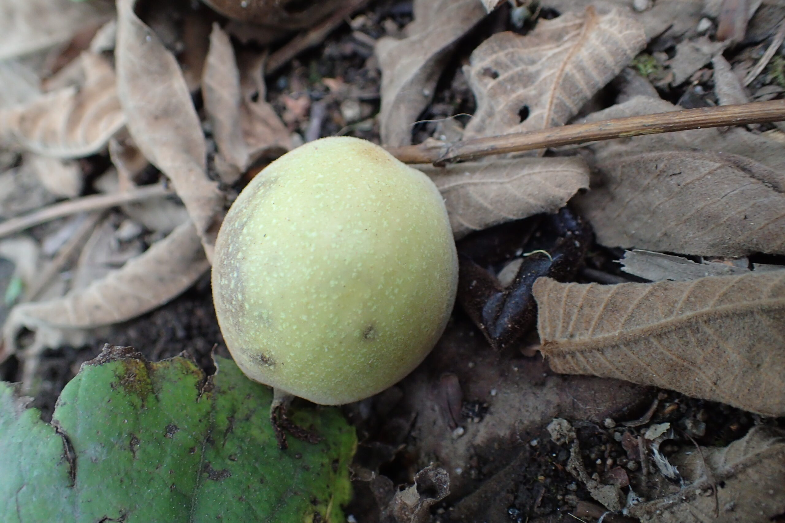 オニグルミの果実は中に大きな種子が入っていてその中身は栄養たっぷりです。いろんな動物がオニグルミを食料にするためにあちこちに運んでいきます。エゾリスも大事そうにくわえて持っていきますよ。落ちていたものは動物たちのために、そのままにしておきました。