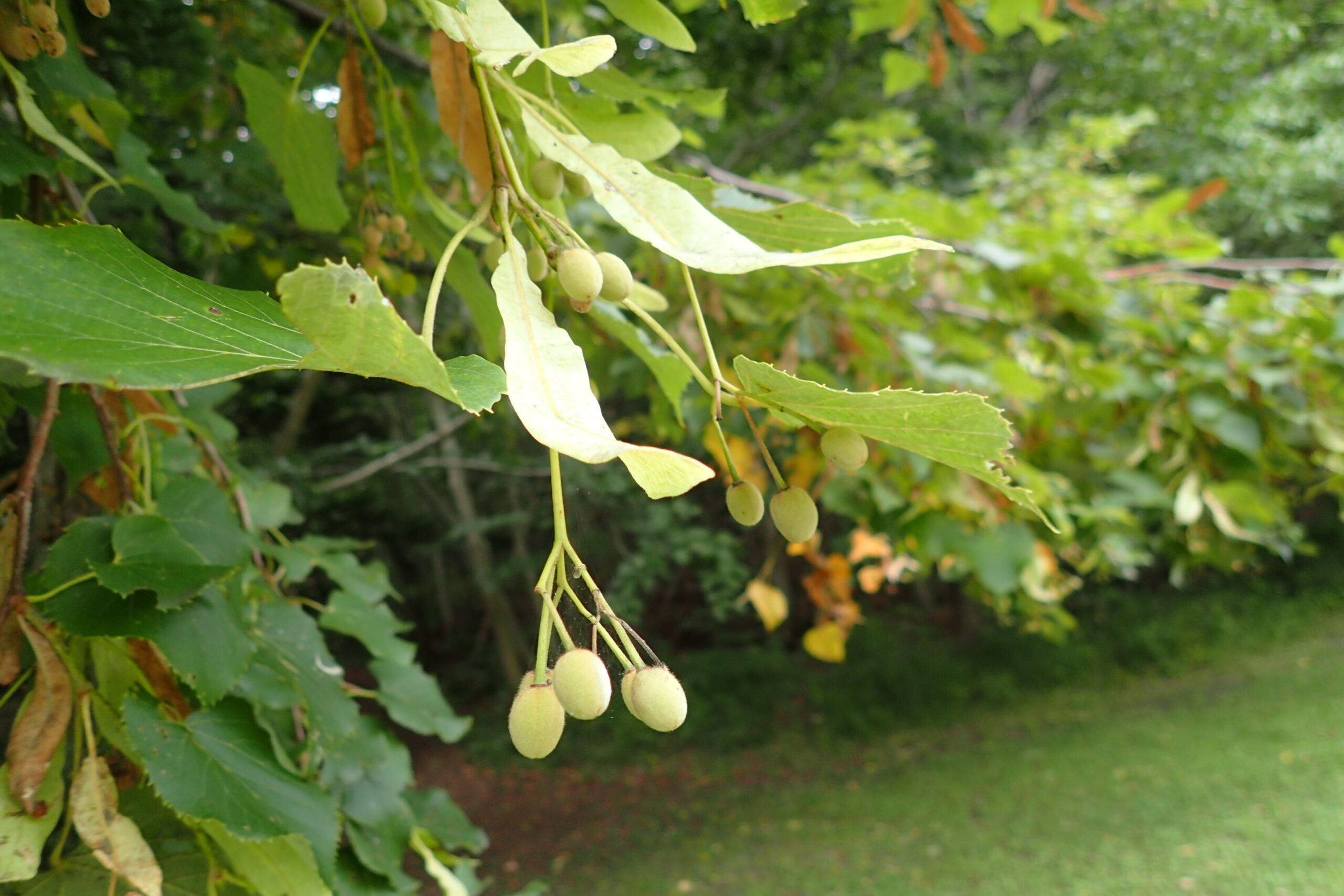 オオバボダイジュの果実は苞がついていて、クルクルと風に運ばれるタイプです。