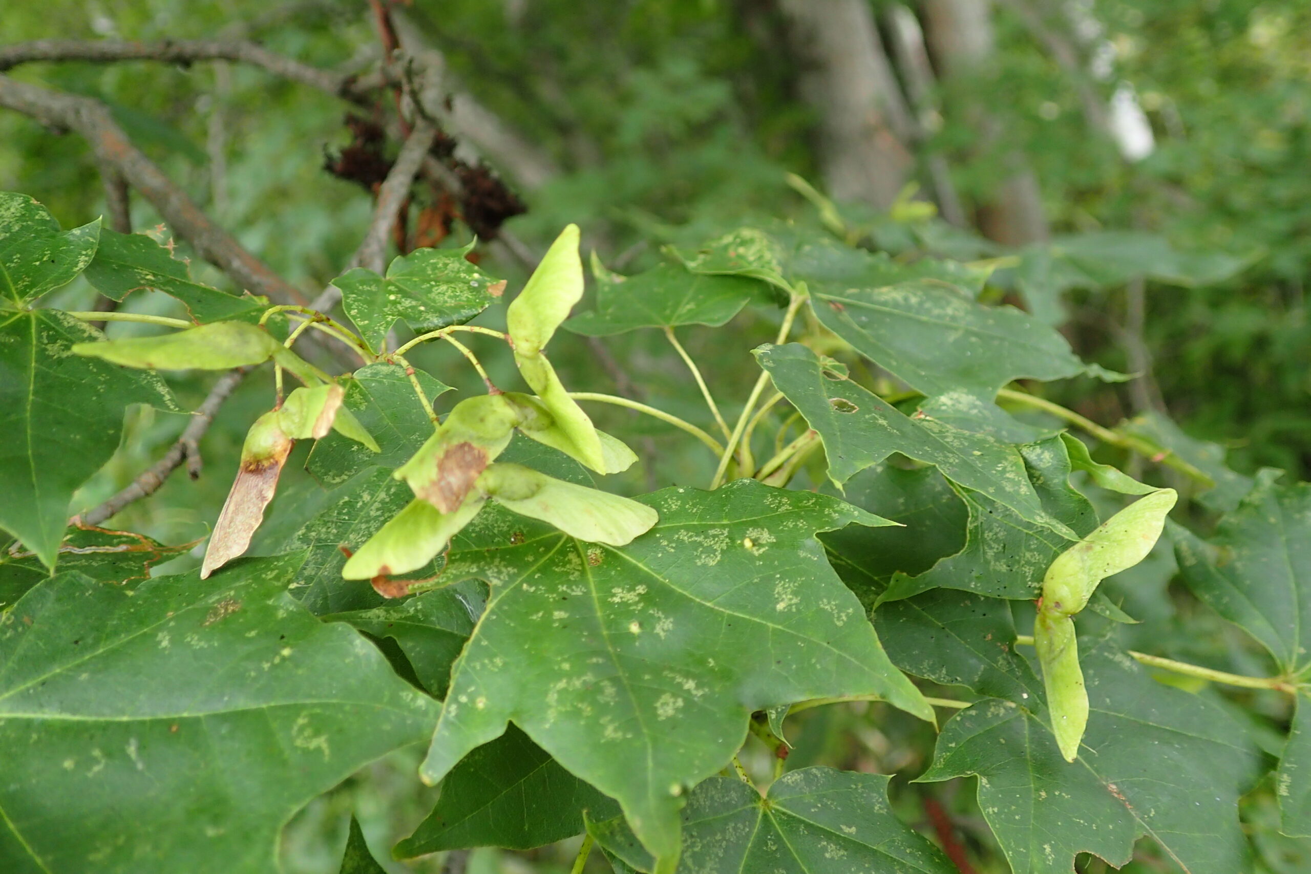 イタヤカエデの果実も軸から外れるとヘリコプターのようにくるくると回りながら離れたところに運ばれます。もう少し季節が進むとそういった光景も見られそうですね。